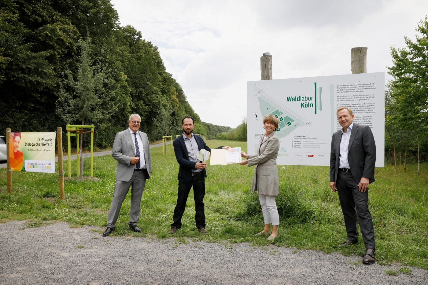 Das Kölner Waldlabor hat den Titel „Ausgezeichnetes Projekt der UN-Dekade Biologische Vielfalt“ erhalten. Verliehen wird die Bezeichnung an vorbildliche Projekte, die sich in besonderer Weise für die Erhaltung der biologischen Vielfalt hervortun. Das Waldlabor ist ein Gemeinschaftsprojekt von Toyota Deutschland, RheinEnergie AG Köln und Stadt Köln. Oberbürgermeisterin Henriette Reker, der Präsidenten von Toyota Deutschland, Alain Uyttenhoven, und der Vorstandsvorsitzende der RheinEnergie AG Köln, Dr. Dieter Steinkamp, haben am Freitag, 17. Juli 2020, die Auszeichnung entgegen genommen. Die Urkunde überreichte Jakob Pöllath, Waldexperte für Naturschutz und nahhaltige Nutzung im Bundesamt für Naturschutz.