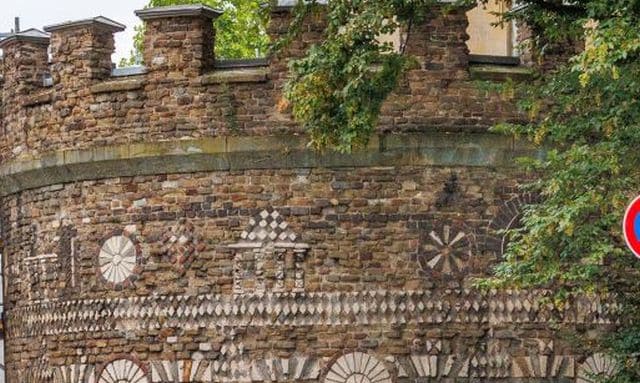 Der Römerturm an der Zeughausstraße Köln ist rund 2.000 Jahre alt. Als Teil der Stadtmauer diente er in römischer Zeit zunächst dem Schutz der Siedlung Colonia Claudia Ara Agrippinensium. Doch die kunstvoll gestaltete Steinfassade war auch ein steinernes Werbebanner für römische Kultur. Der Kölner Turm gehört zu den frühesten Beispielen für ein, wie die Fachleute sagen, musivisches Mauerwerk, eine Mauerdekoration mithilfe verschiedener Steinsorten, die am Römerturm besonders detailreich und aufwendig umgesetzt wurde. Die Fischgrätenmuster, Halbrosetten oder stilisierte Tempelfronten sind alle noch originales Mauerwerk. Erst oberhalb der Kreisornamente endet der antike Baubestand. Überdauert hat das im Mittelalter „Clarenturm“ genannte Bauwerk als Latrine des Klarissenklosters. Erst im 19. Jahrhundert besann man sich wieder seiner römischen Ursprünge und setzte den Zinnenkranz auf.