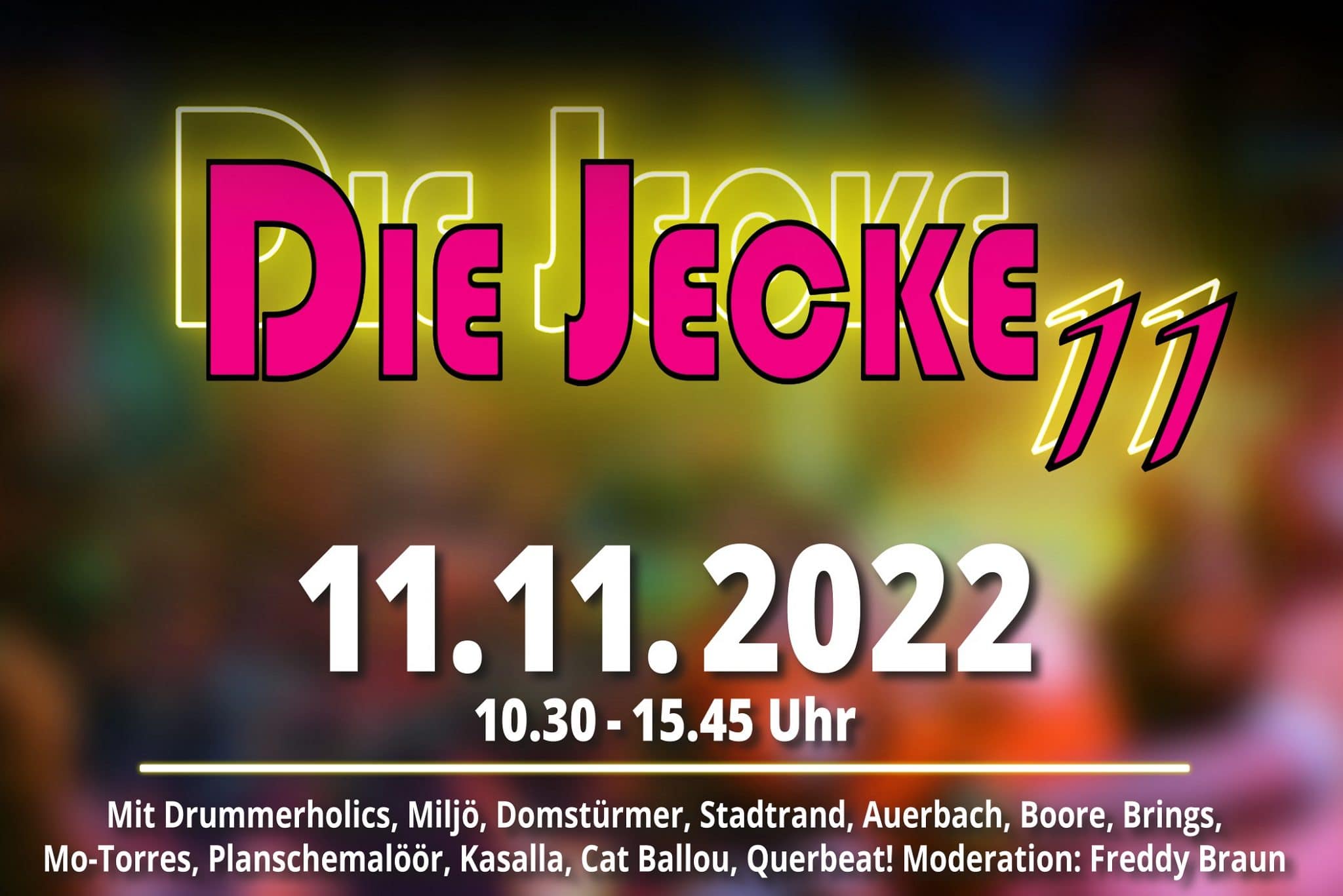 Eberhard Bauer-Hofner, Chef der veranstaltenden Gastspieldirektion Otto Hofner GmbH und sein Team: „Wir freuen uns nun auch ein Veranstaltungsangebot zum Sessionsstart 11.11 für Jecke groß/klein/jung/alt anbieten zu können. „Die Jecke 11“ soll nicht nur festetablierten Bands eine Bühne bieten sondern auch Nachwuchsbands. Jeder kann sich sehr gerne bei uns bewerben. Lasst uns gemeinsam kölsches Brauchtum pflegen und wetterunabhängig feiern.“