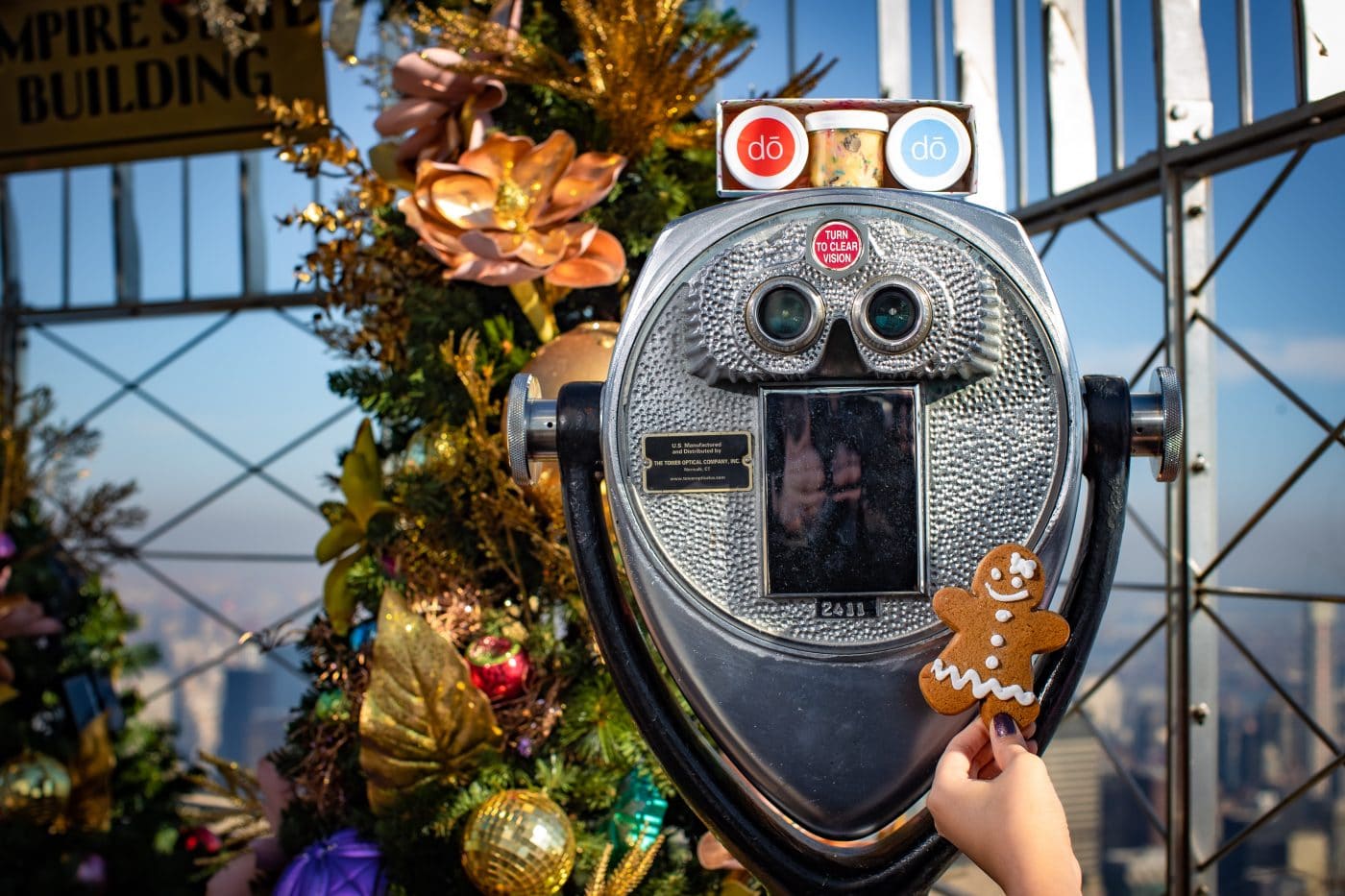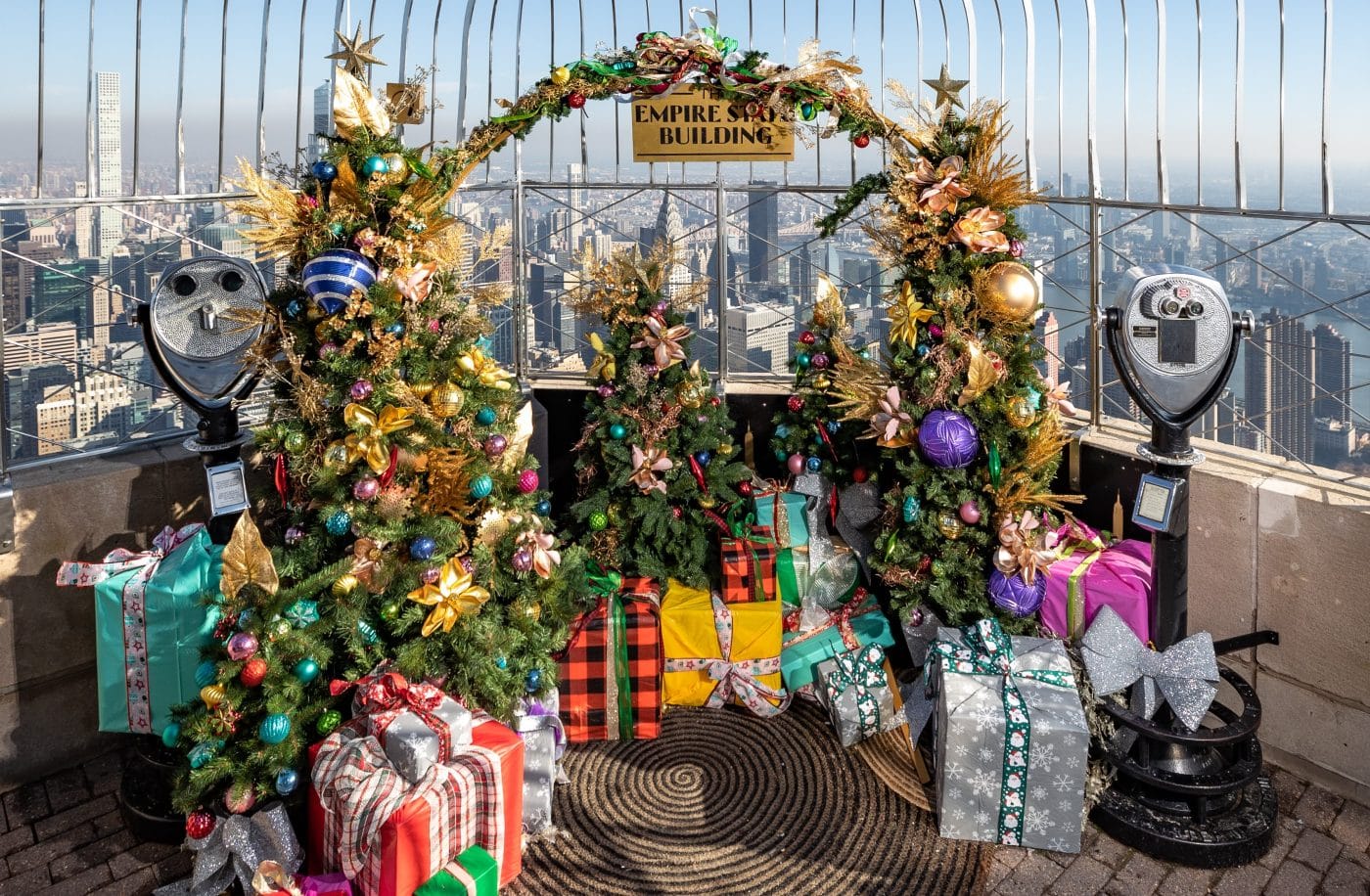 Ein riesiger Menora-Leuchter begrüßt die Gäste, wenn sie das Empire State Building Observatory Experience betreten, und eine weihnachtliche Fotokulisse an der nordöstlichen Ecke des 86. Stockwerks des Observatoriums ermöglicht es den Gästen, ihre jährlichen Weihnachtsporträts vor der kultigsten und authentischsten Kulisse von New York zu machen. Dekorationen werden bis zum 6. Januar in der Lobby und in der gesamten Observatory Experience ausgestellt.