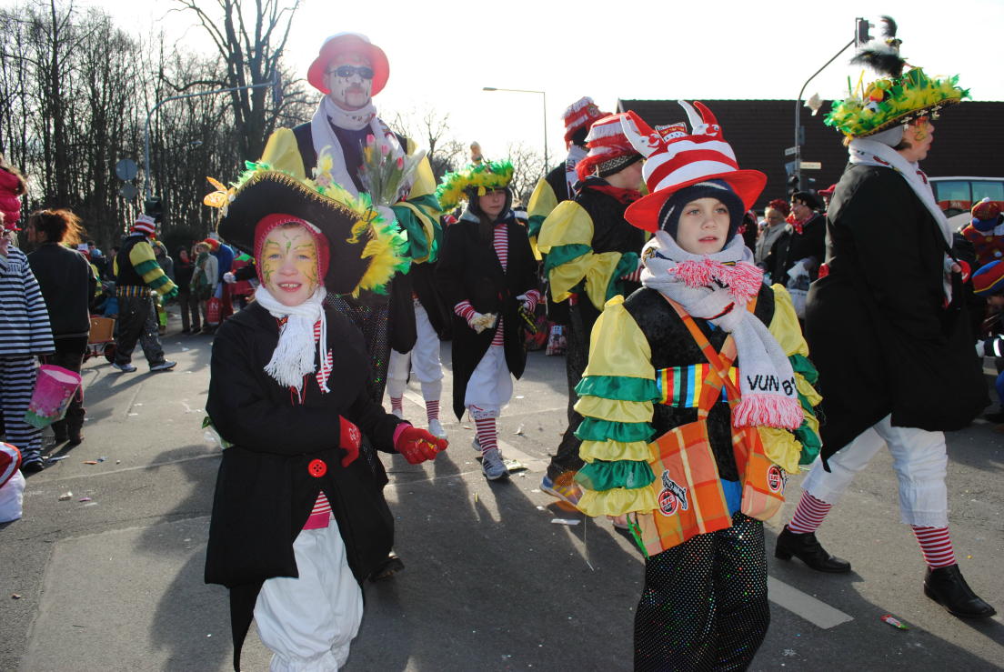 Wie in jedem Jahr machten sich die meisten Dünnwalder am Karnevalssonntag auf den Weg, um den „Zoch“ zu sehen und möglichst viele „Kamelle“ zu sammeln. Bald schon waren die Straßenränder voll kostümierter Menschen und auch die ganz Kleinen wurden richtig rausgeputzt. Zwar war das Wetter nicht ganz so schön, wie im letzten Jahr, aber das tat der Sache keinen Abbruch.