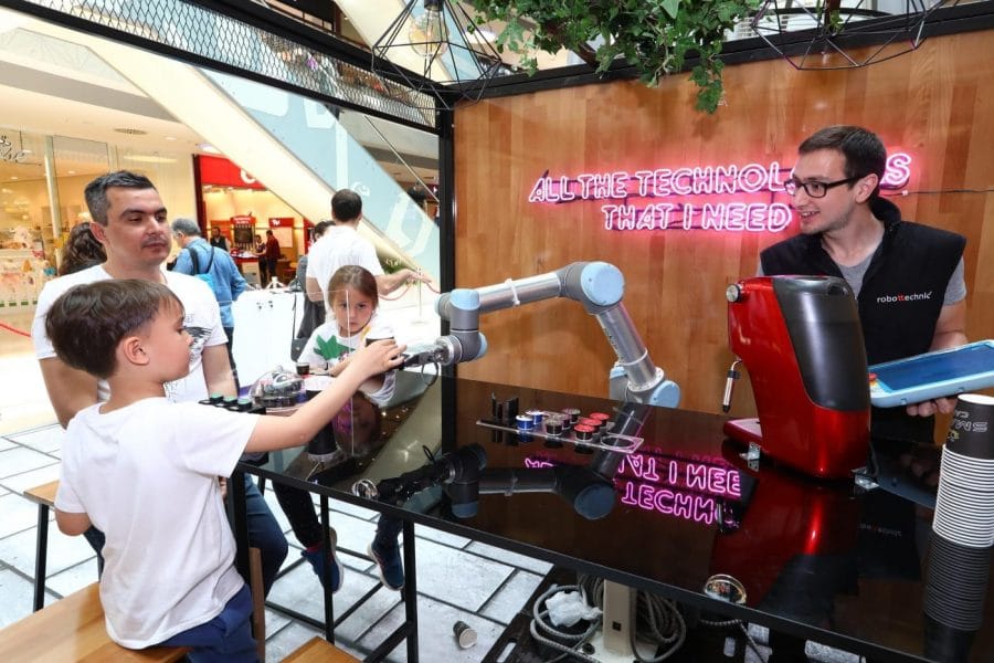 Ein smartes Café rundet das Future-Erlebnis schließlich ab. Statt eines echten Baristas bereitet ein Roboterarm die gewünschten Kaffee-Spezialitäten im Alstertal-Einkaufszentrum zu. Zur Entspannung kann man hier auch gegen künstliche Intelligenz Schach spielen oder mit Virtual Reality Brille Zeitschriften lesen.
