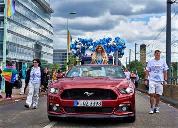 Zum 23. Mal wird die Gruppe der Ford-Werke den Automobilhersteller beim Kölner Christopher Street Day (CSD) vertreten. In der Demonstration am Sonntag, 8. Juli 2018, führt der brasilianische Travestiekünstler Daniel Almeida in seiner Rolle als Drag Queen Karen Durand die rund 100-köpfige Ford-Gruppe auf einem orange-farbenen Ford Mustang Cabrio an. Gebildet wird die Gruppe aus Beschäftigten der Ford-Werke, deren Familien und Freunden und einem Truck, der unter anderem dem bekannten DJ Ralph Rosenbaum als fahrbarer Untersatz dient, und nebenbei 3.000 langstielige Rosen, 15.000 Lollies, 15.000 Mentos sowie 1.500 Tütchen Glücksgewürz als Give Aways transportiert.