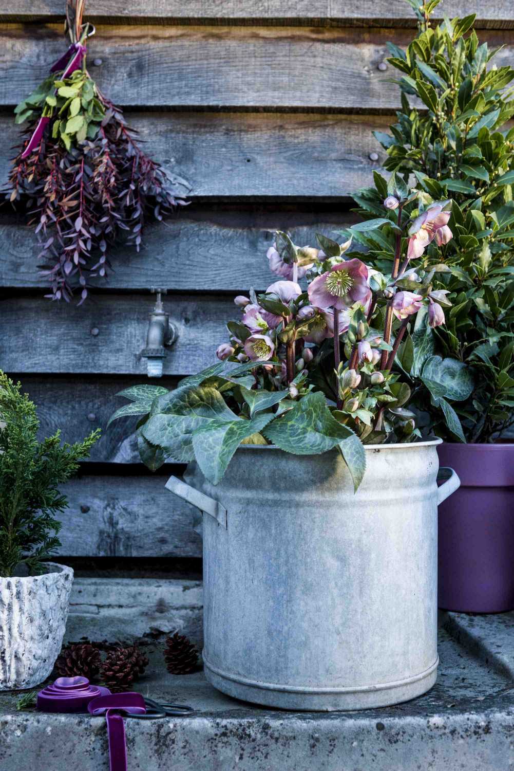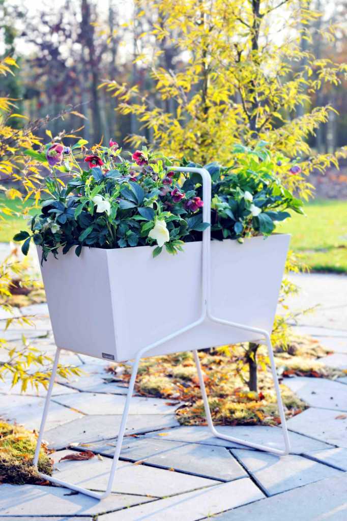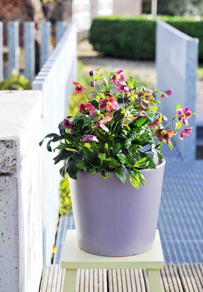 Der ideale Gegenspieler dazu ist die Lenzrose, die mit ihren klassisch fünfblättrigen Blüten den eleganten Ausgleich schafft. Um die natürliche Schönheit der Pflanze zu betonen, wird sie in grauen oder weißen Töpfen und Kübeln platziert. Dabei können weiße und gelbliche Varianten mit solchen in Dunkelrot oder Violett in einem Gefäß kombiniert werden. Zusammen mit dem Grün des Blattwerks werden im herbstlichen Garten auf diese Weise Stil-Akzente des „Indian Summer“ kreiert.
