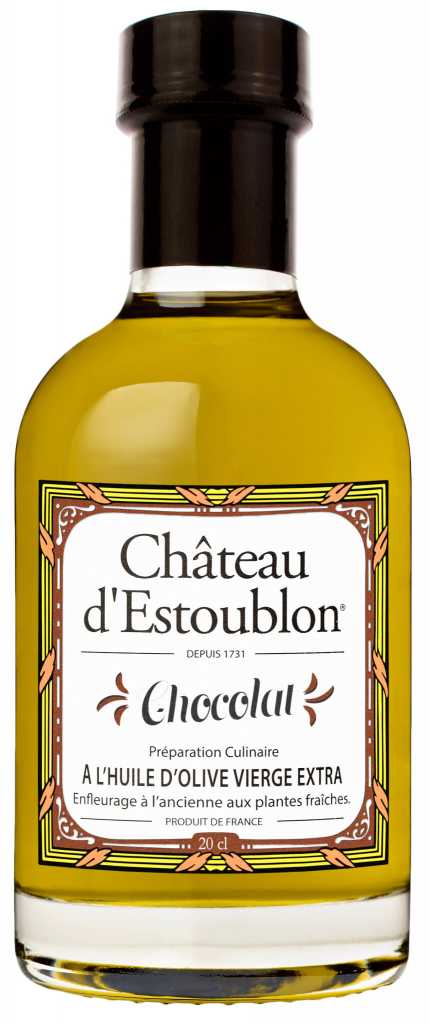 Château d’Estoublon präsentiert seine jüngste Kreation: Ein Olivenöl, das mit einer feinen Kakaonote versehen wurde. Das neue Öl „Chocolat“ schmeckt lieblich süß und veredelt Desserts oder auch herzhafte Gerichte.  Bei Herstellung werden Kakaobohnen für die Aromabildung zuerst fermentiert und anschließend im zermahlenen Zustand in das Olivenöl vierge extra eingelegt. Daraus entsteht eine exquisite Ölmischung die durch ihre Süße, Sanftheit und Feinheit überzeugt. Das Öl kann für süße, aber auch für herzhafte Speisen verwendet werden. Ein Hauch Schokoladen-Olivenöl auf Vanilleeis oder zu Birne an Thymian ist eine überraschende Abwechslung. Auch ein Obstsalat oder ein Crumble, frisch aus dem Ofen, können mit dem neuen Öl verfeinert werden.