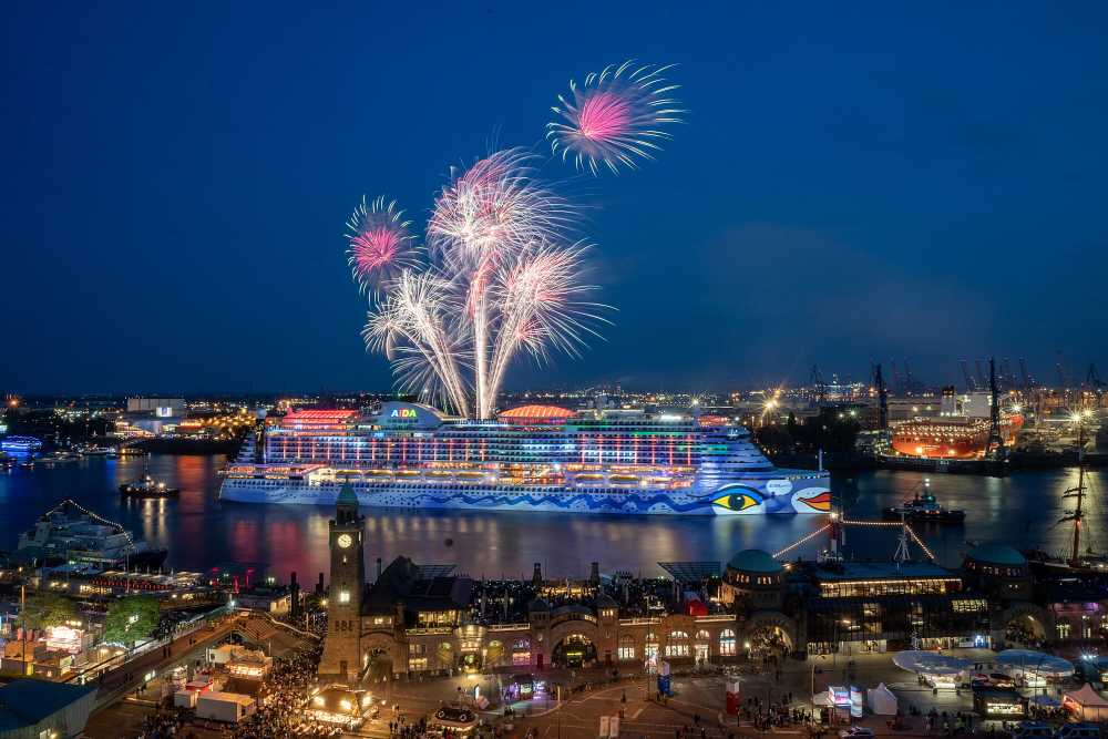 Zum 829. HAFENGEBURTSTAG HAMBURG präsentierte der Hauptsponsor AIDA Cruises am gestrigen Abend das große Geburtstagsfeuerwerk. Das Kreuzfahrtschiff AIDAperla war Mittelpunkt der Licht- und Feuerwerkinszenierung.