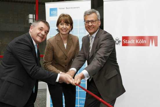 Bildunterschrift 1: Oberbürgermeisterin Henriette Reker (Mitte) sowie Vorsitzender Karl-Heinz Spix (li.) und Schatzmeister Horst Behr (re.) vom VDI machen sich gemeinsam stark für Ingenieursnachwuchs in der Region Köln.