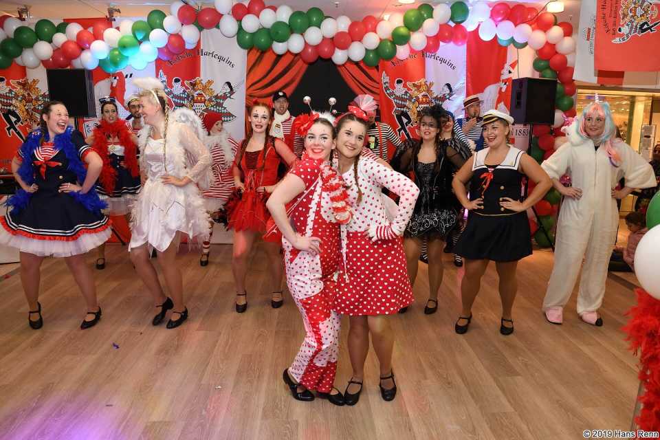 Ab 11 Uhr heizte DJ Roland die Stimmung an, konnten sich Kinder schminken lassen und das erwachsene Einkaufspublikum das ein oder andere Kölsch genießen. Erster Höhepunkt war der Auftritt der gesellschaftseigenen Kinder- und Jugendtanzgruppen der „Kölsche Harlequins“, deren tänzerische Darbietung alle begeisterte. Im Anschluss zog der Spillmannszoch der KG Kallendresser ein und brachte das Publikum mit ihren kölsche Tön kräftig zum Schunkeln. Modisch ging es weiter. Die Jungs und Mädels der „Kölsche Harlequins“ hatten sich zwischenzeitlich umgezogen und präsentierten nun eine besondere Modeschau mit tollen Karnevalskostümen aus dem Sortiment der Galeria Kaufhof. Und das sichtlich mit ganz viel Spaß. Schließlich schaute Max Biermann vorbei und lud zum Mitsingen bekannter Leedcher ein. Die Zuschauer ließen sich das nicht zweimal sagen und stimmten kräftig ein. Am Gaffel-Stand sorgten Mitglieder und Freunde der K.G. Alt-Köllen sorgten den ganzen Tag für das leibliche Wohl.