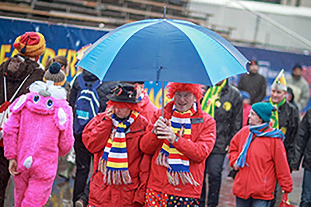 Zum Start in den Höhepunkt des Straßenkarnevals an Weiberfastnacht wird die Sonne der letzten Tage durch lebhafteres und vielleicht sogar stürmisches Wetter abgelöst. Kein Grund für einen wahren Karnevalisten, Trübsal zu blasen. Schließlich gibt es passend zum Charme auch einen Schirm und winddichte Kleidung.
