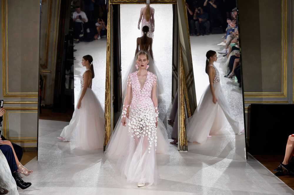 Mit der in Paris präsentierten Kollektion LA VIE EN ROSE zeigt KAVIAR GAUCHE seine Bridal Couture Designs für 2018 durch die rosarote Brille und damit erstmals nicht ausschließlich in Ivory, sondern auch in pudrigen Rosétönen bis hin zu Pale-Pink. Denn genau das bedeutet der Name der Kollektion, welcher im Jahr 1945 von Edith Piaf erfolgreich vertont wurde. LA VIE EN ROSE – ‚im siebten Himmel schweben‘, ‚in einem Bett aus Rosenblättern schlafen‘ und ‚das Leben durch die rosarote Brille sehen‘ sind sinngemäße Übersetzungen dieser französischen Redewendung. Die beiden Chef-Designerinnern Alexandra Fischer-Roehler und Johanna Kühl greifen als Inspiration neben diesem übergeordneten Thema erneut Blüten in vielen Formen und somit ein florales Element auf, welches auf nahezu die gesamte Kollektion übertragen wurde. Die 24 Looks setzen sich aus den für Kaviar Gauche typischen Bridal Designs, der Bridal Couture Kollektion, Ready to Marry und Couture-Dresses, aber auch aus Occasion und Red-Carpet-Looks zusammen. Für die Verarbeitung wurden vor allem hauchzarte, transparente Stoffe, wie Chiffon, Organza und Seidentüll ausgewählt.