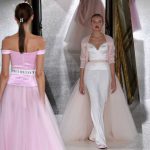 Für die Kreation der Headpieces und des Halsschmucks arbeitete Kaviar Gauche diesmal eng mit der Designerin Huli Khuvilai des Accessoire Labels Kokoro zusammen und entwickelten symbiotisch für diese Kollektion die Dornröschen-Headpieces, welche die Farb- und Formsprache in besonderer Weise aufgreifen und fortführen. Die dabei entstandenen Schmuckstücke stellen eine moderne „rosige“ Interpretation der Myrtenkronen dar, die um die Jahrhundertwende als edler Brauthaarschmuck getragen und über Generationen weitergegeben wurden. Traditionelle Handwerkstechniken und feinste Materialien, die in der Couture Einsatz finden, sind Grundlage dieser Accessoire-Kollektion. Die entstandenen Kronen sind so aufwendig gearbeitete Schmuckstücke. In minutiöser Feinarbeit wurden feine Seidenstoffe von Hand zu Blütenblättern geschnitten, in Form gepresst und mit großer Sorgfalt kunstvoll zu Rosen und Zweigen zusammengesetzt. Die exklusiven Headpieces mit ihren Kristallenen Dornen verleihen der Trägerin einen anmutigen fast schon royalen Touch.In den Farben der Kollektion und zum Gesamtbild passende Gürtel und Schuhe vervollständigen den Brautlook für das kommende Jahr. Passend zur Kollektion wurde der Cinderella-Mule entwickelt, welcher durch den Einsatz von modernen Materialen einen Kontrast zu den märchenhaften Kleidern und damit einen lässigen Look schafft. Auch bei den neuen Signature-Gürteln in Rosé wurden verschieden Hightech-Materialen verwendet und in einer asymmetrischen Wickeltechnik verarbeitet. Romantische Weiblichkeit, französische Eleganz und natürliche Leichtigkeit sind Attribute, die der aktuellen Kollektion sowie ihren Trägerinnen zugeschrieben werden können.