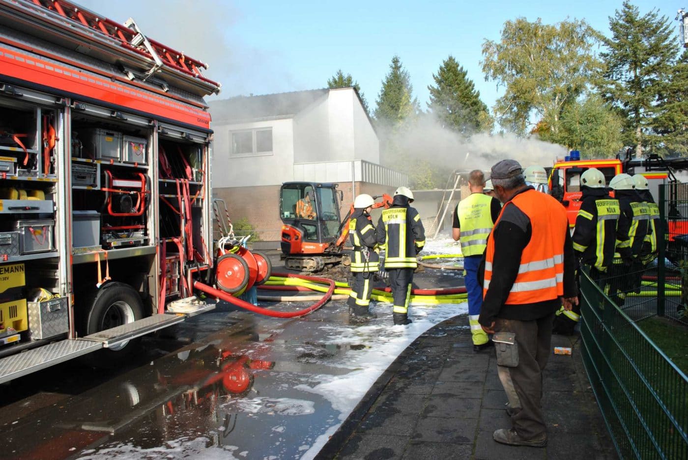 Heute gegen Mittag kam es zu einem Großeinsatz in Köln- Höhenhaus. Zwei Löschzüge sowie der Rettungsdienst und Notarzt waren schnell am Unglücksort, konnten Gerd S. (62) aber nicht mehr retten. Eine zweite Person wurde zunächst vermisst, konnte aber nicht gleich gefunden werden. Nach Aussage des Einsatzleiters war wohl doch eine Frau noch vor Ort, wobei es sich um die Schwägerin des Verunglückten handeln könnte. Sie wurde zur Sicherheit in ein naheliegendes Krankenhaus gebraucht, konnte aber kurz darauf nachhause entlassen werden. Bis in den Nachmittag war die Feuerwehr etwa bei der Suche nach Glutnestern mit sogenannten Nachlöscharbeiten beschäftigt, die Einsatzkräfte fanden in dem Haus unter anderem fünf Gasflaschen. Nach Angaben des Sprechers war mindestens eine davon vor oder während des Brands explodiert, das sei unter anderem durch schiefe Wände und weitere beschädigte Teile der Bausubstanz des Gebäudes deutlich geworden.