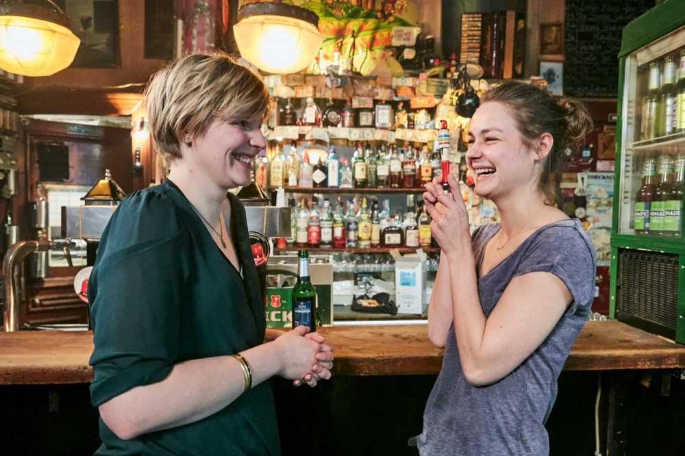 Insgesamt acht Persönlichkeiten schlüpften in die Rollen der Stammgäste. Es sind nicht durchweg Schauspieler, es sind auch ein Musiker, eine Regisseurin, ein Regisseur, ein Komiker und ein Kriminalbiologe darunter. Jeweils zu zweit haben sie ein Gespräch improvisiert. Die Themen der Gespräche waren vorgegeben, der Rest entwickelte sich im Drehprozess.