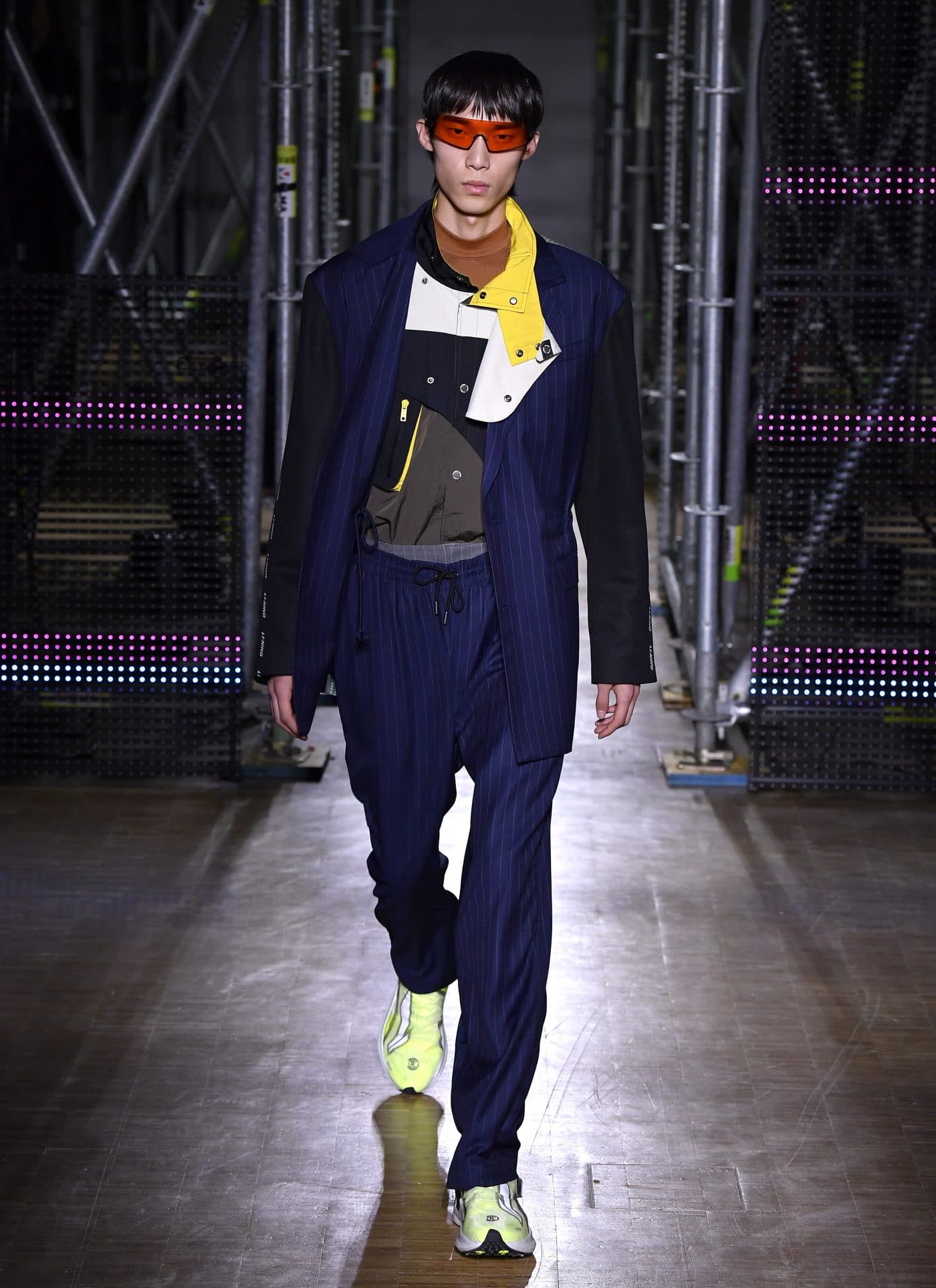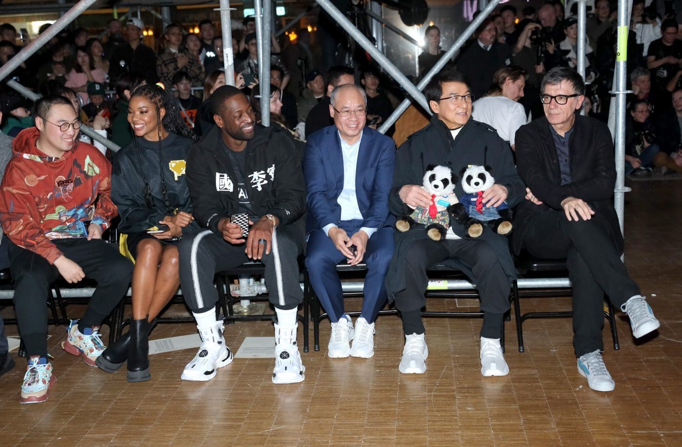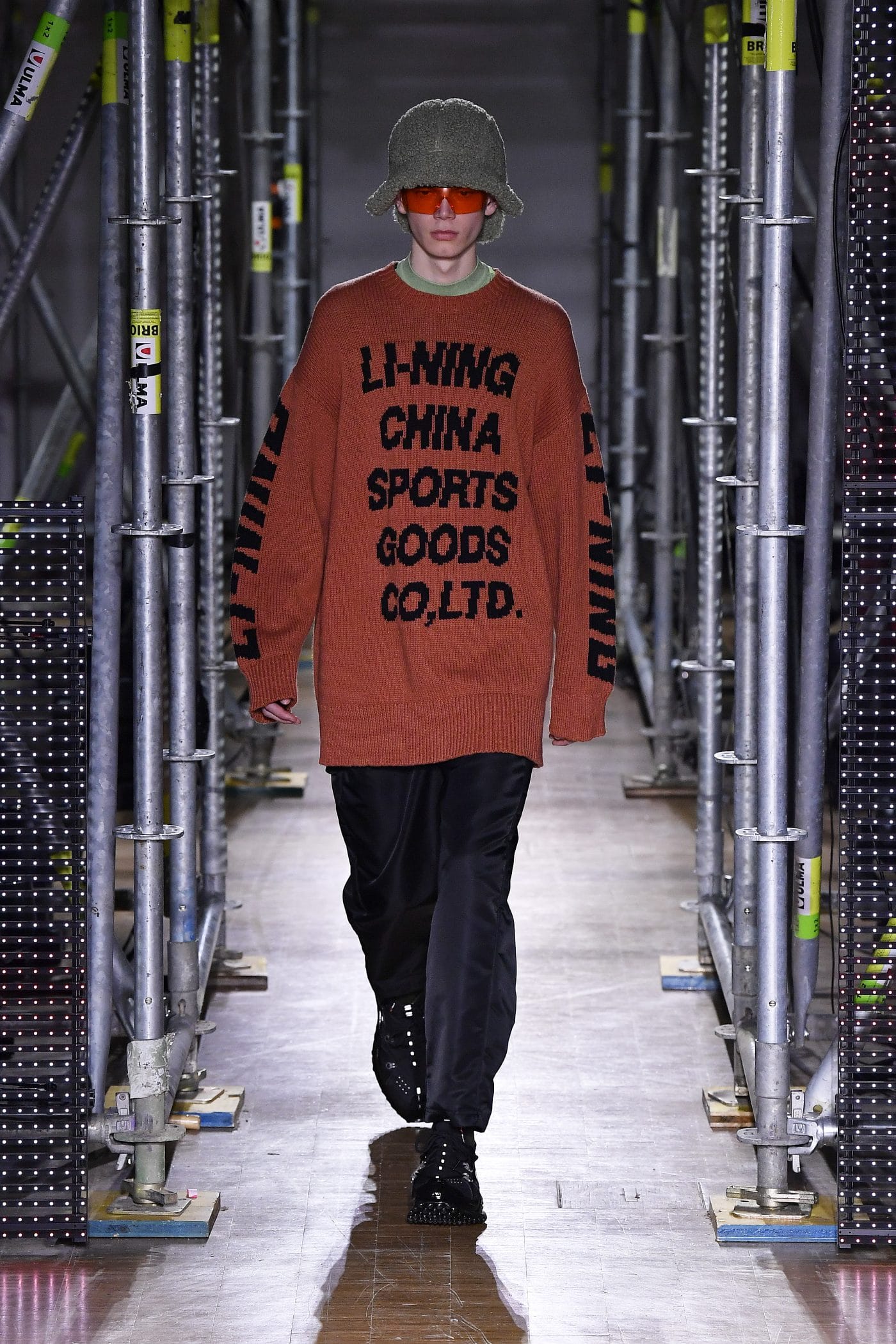 Li-Nings Herbst / Winter 2020-Show eröffnet die Partnerschaft am 18. Januar 2020 und nutzt die weitläufigen Galerien des Veranstaltungsortes, um diese besondere Jubiläumskollektion zu präsentieren. Für die Show schafft Li-Ning den Effekt einer sich verändernden 3-D-Stadtlandschaft – der Pompidou, beleuchtet in einem matrixartigen Raster aus Gerüsten, Neon-LED-Bildschirmen und Monitoren mit 8-Bit-Inhalten, die an Videos der 80er Jahre erinnern. Gäste wie Jackie Chan, Li Ning, Dwyane Wade, Gabrielle Union, Stefano Pilati, MJ Harper und Honey Dijon nahmen an diesem Event teil und ein völlig neuer Jackie Chan präsentierte sich als Model und machte er sehr professionell.