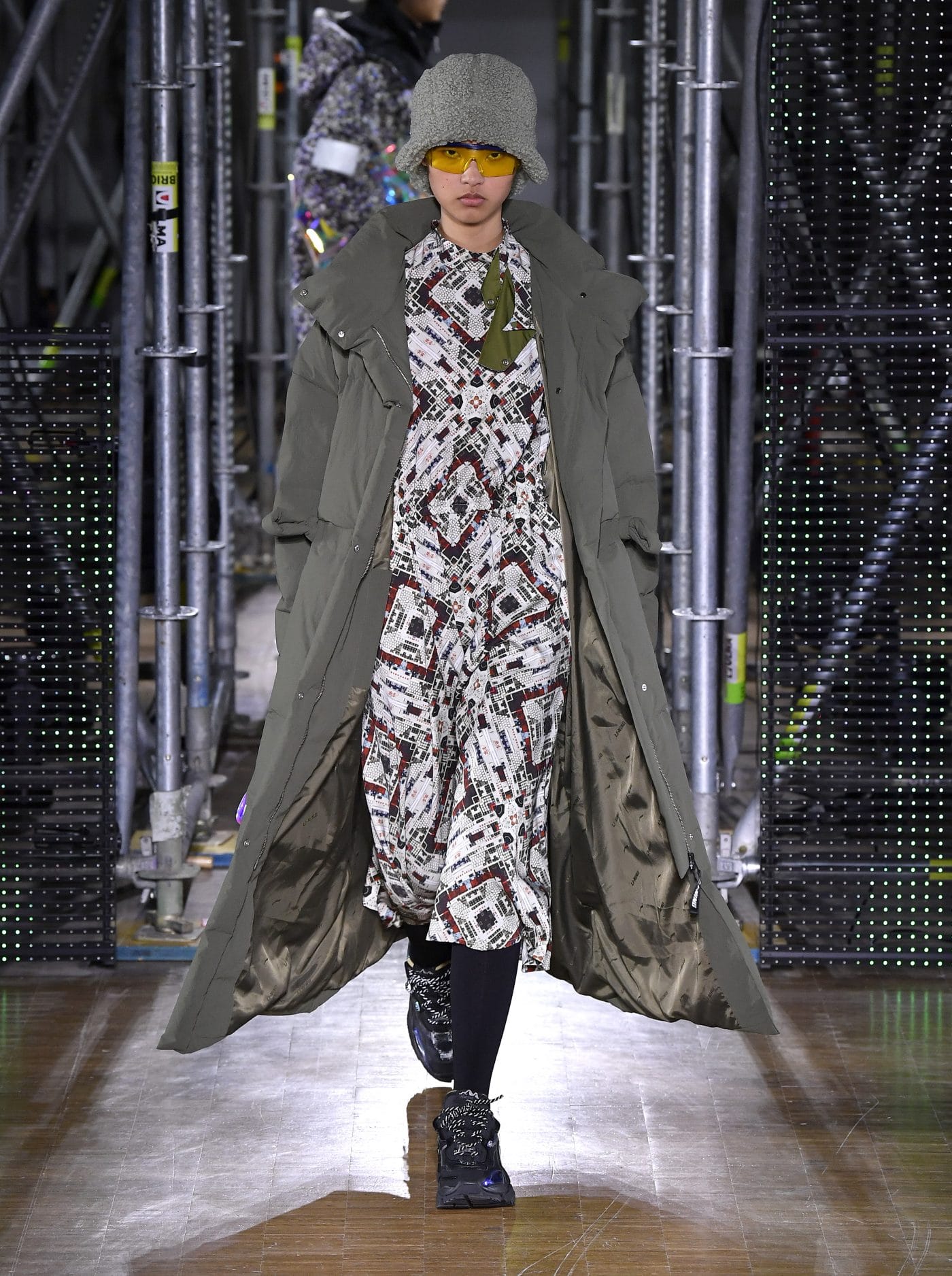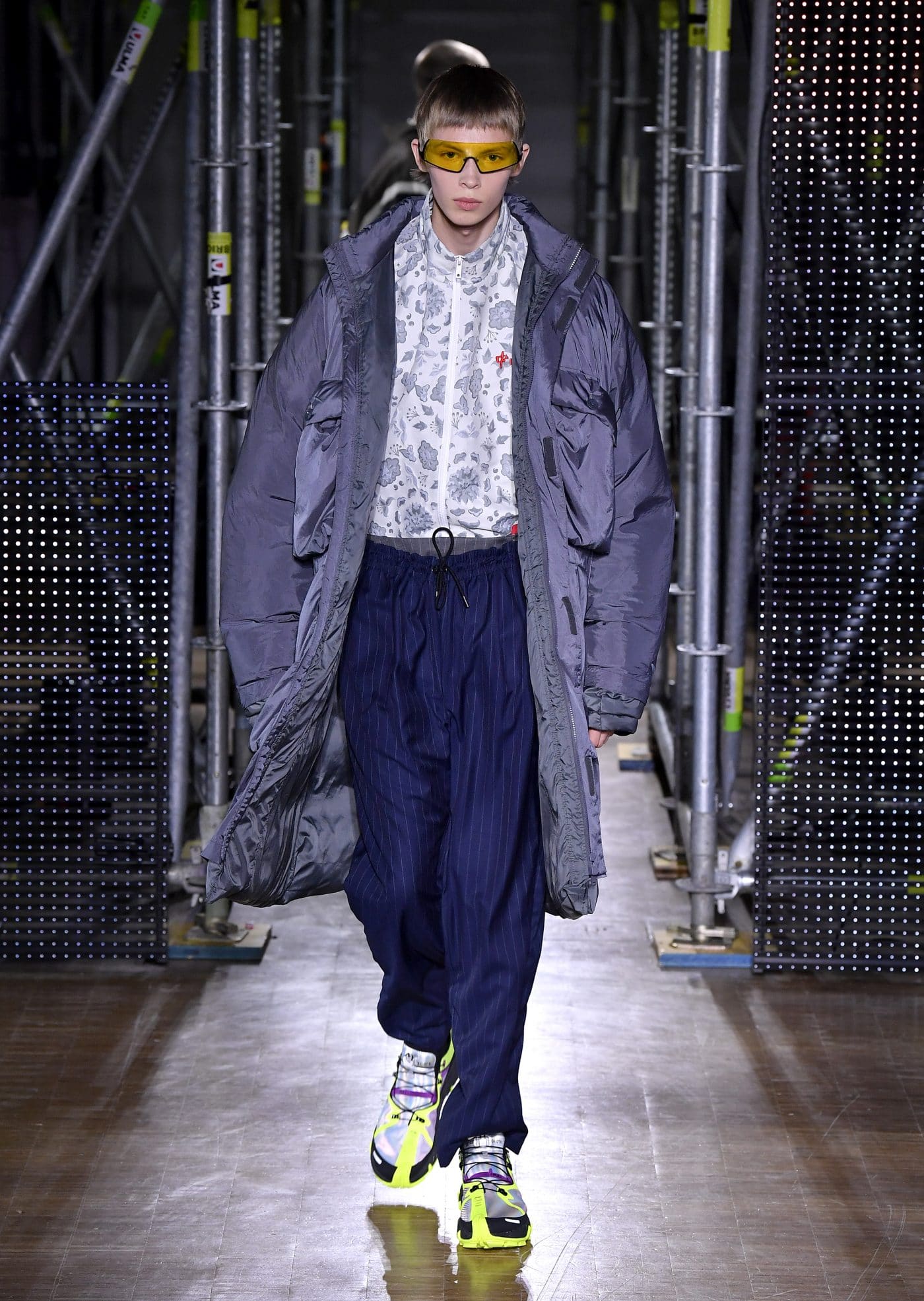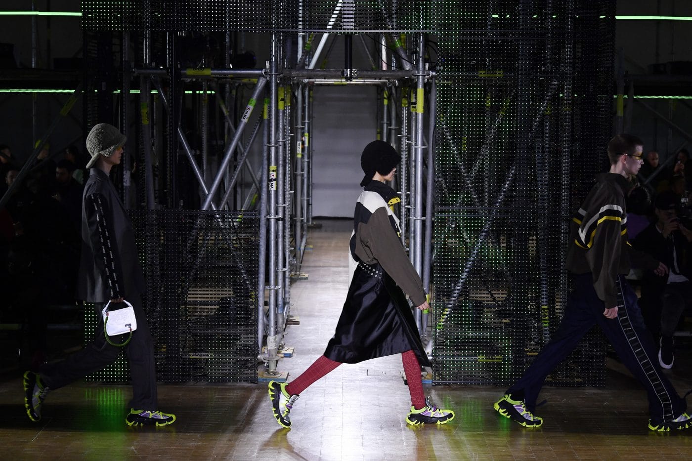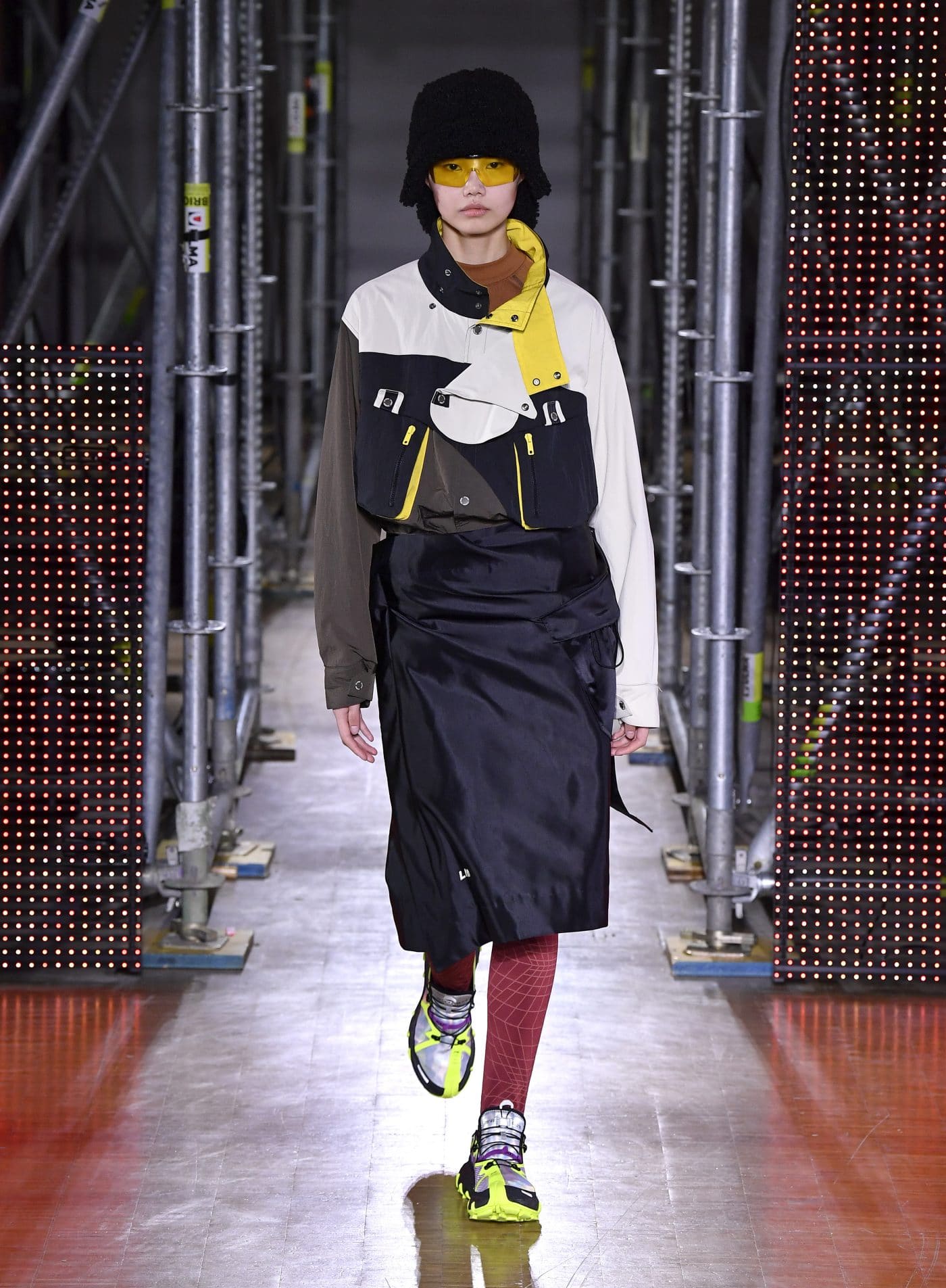 Li-Nings Herbst / Winter 2020-Show eröffnet die Partnerschaft am 18. Januar 2020 und nutzt die weitläufigen Galerien des Veranstaltungsortes, um diese besondere Jubiläumskollektion zu präsentieren. Für die Show schafft Li-Ning den Effekt einer sich verändernden 3-D-Stadtlandschaft – der Pompidou, beleuchtet in einem matrixartigen Raster aus Gerüsten, Neon-LED-Bildschirmen und Monitoren mit 8-Bit-Inhalten, die an Videos der 80er Jahre erinnern. Gäste wie Jackie Chan, Li Ning, Dwyane Wade, Gabrielle Union, Stefano Pilati, MJ Harper und Honey Dijon nahmen an diesem Event teil und ein völlig neuer Jackie Chan präsentierte sich als Model und machte er sehr professionell.