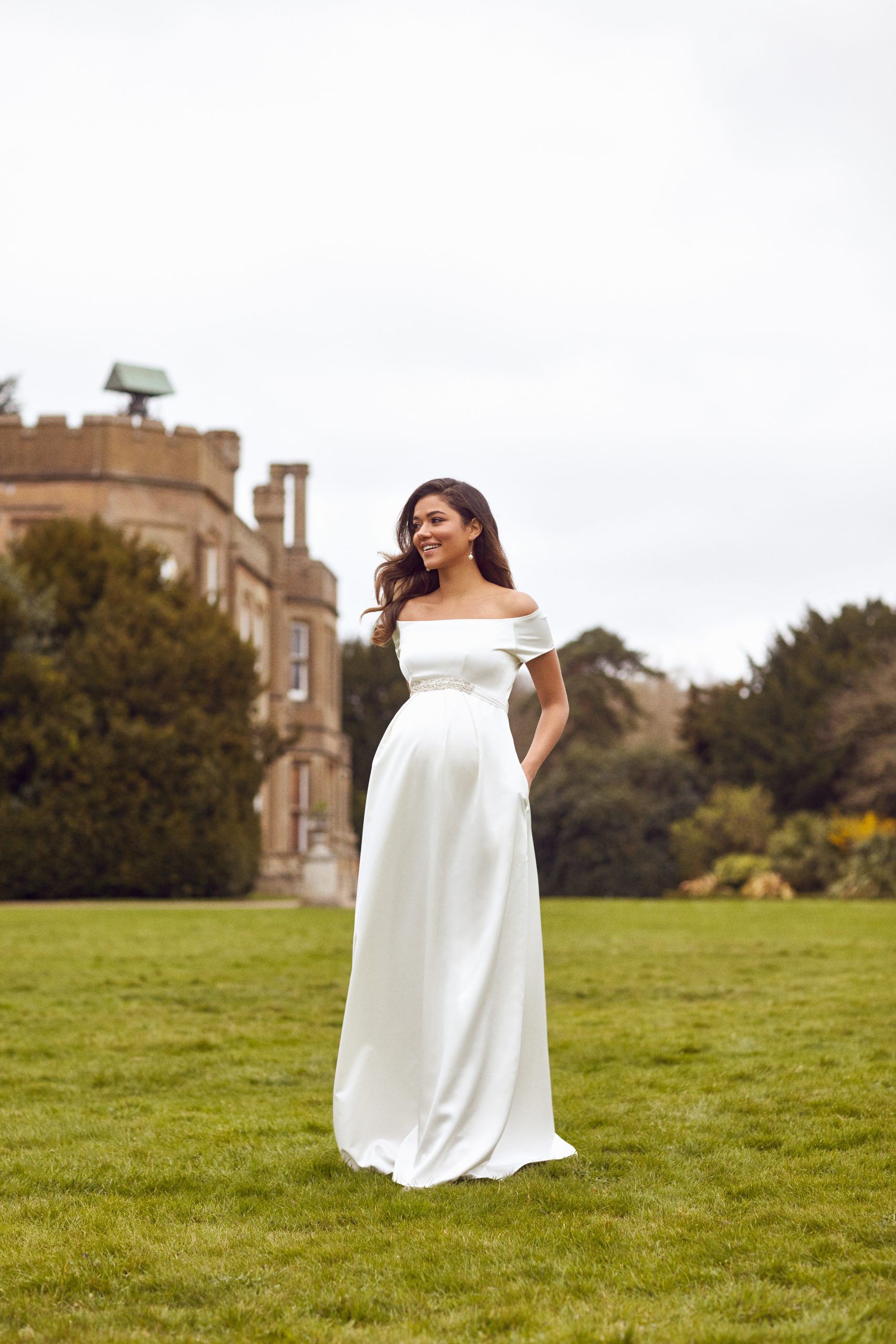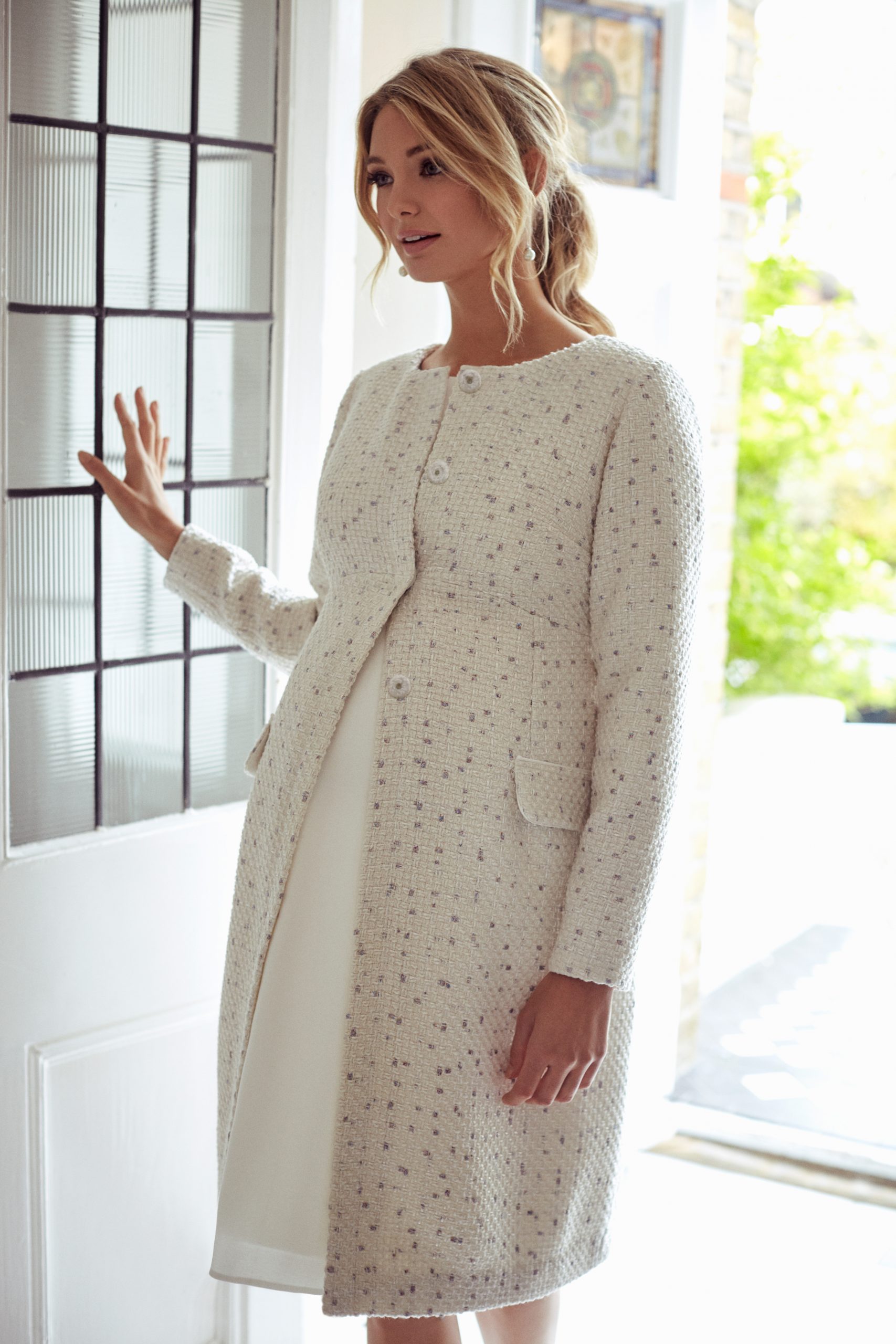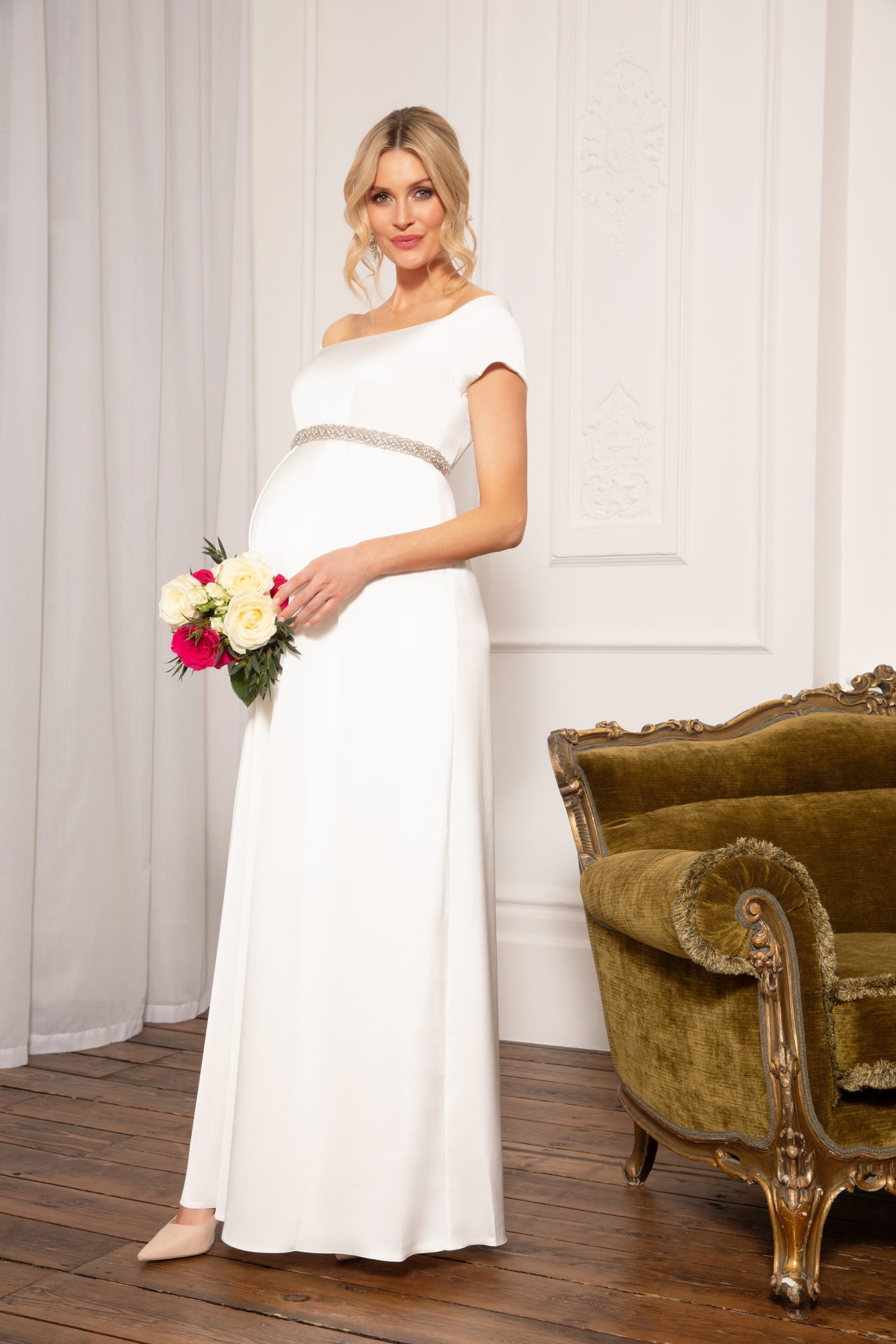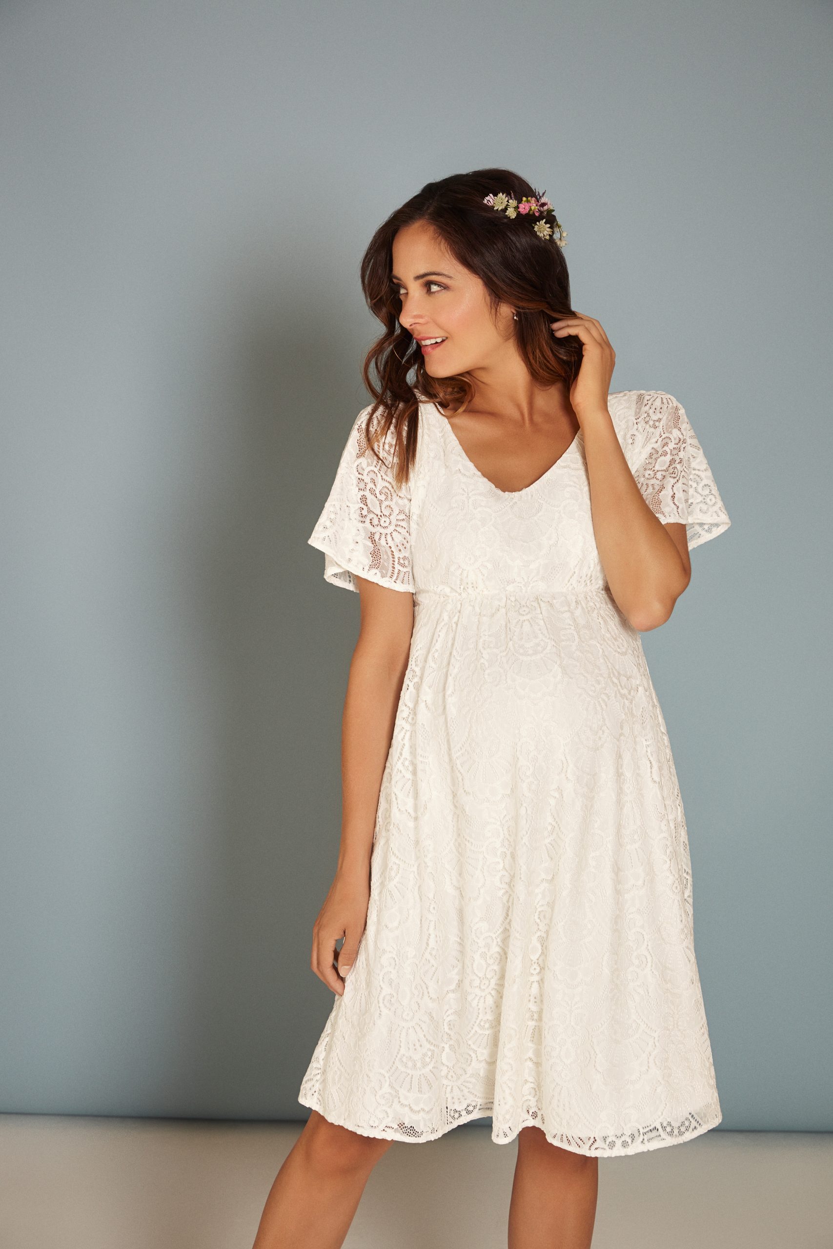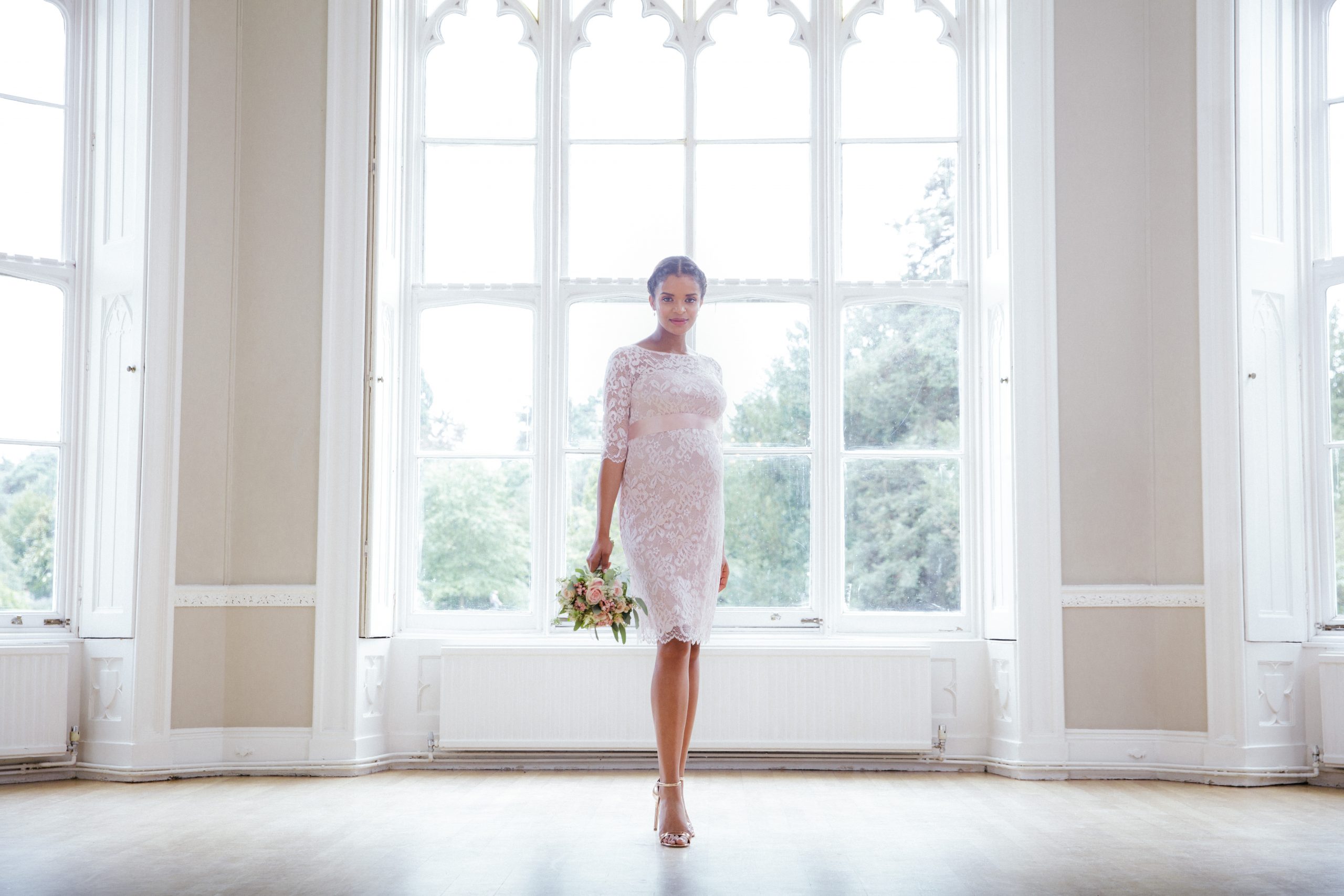 Moderne Bräute, die eine intime Zeremonie planen, finden in den Modellen SIENNA (hier u.a. mit dem Bouclé-Brautmantel Veritiy) ISLA, oder mit der Hosenanzugs-Kombination Remi & Mya (hier mit dem perfekten Begleiter für das Standesamt, die Handtasche DERBY) Styles die schlicht und trotzdem elegant und modern sind. Wenn es gleichwohl „mehr Braut“ und dennoch ein kurzes Kleid sein soll, ist mit Seidenkleid ALASKA und den Modellen Spitzenkleid AMELIA in Cameo Rose (auch in Elfenbein erhältlich) und Boho-Style Edith der Star bei jeder standesamtlichen Trauung mit dem Babybauch.