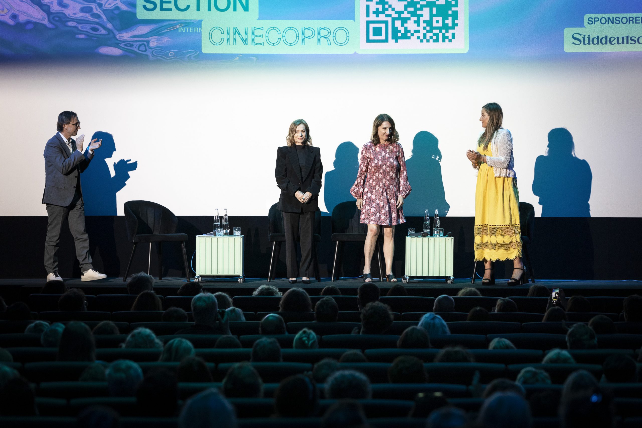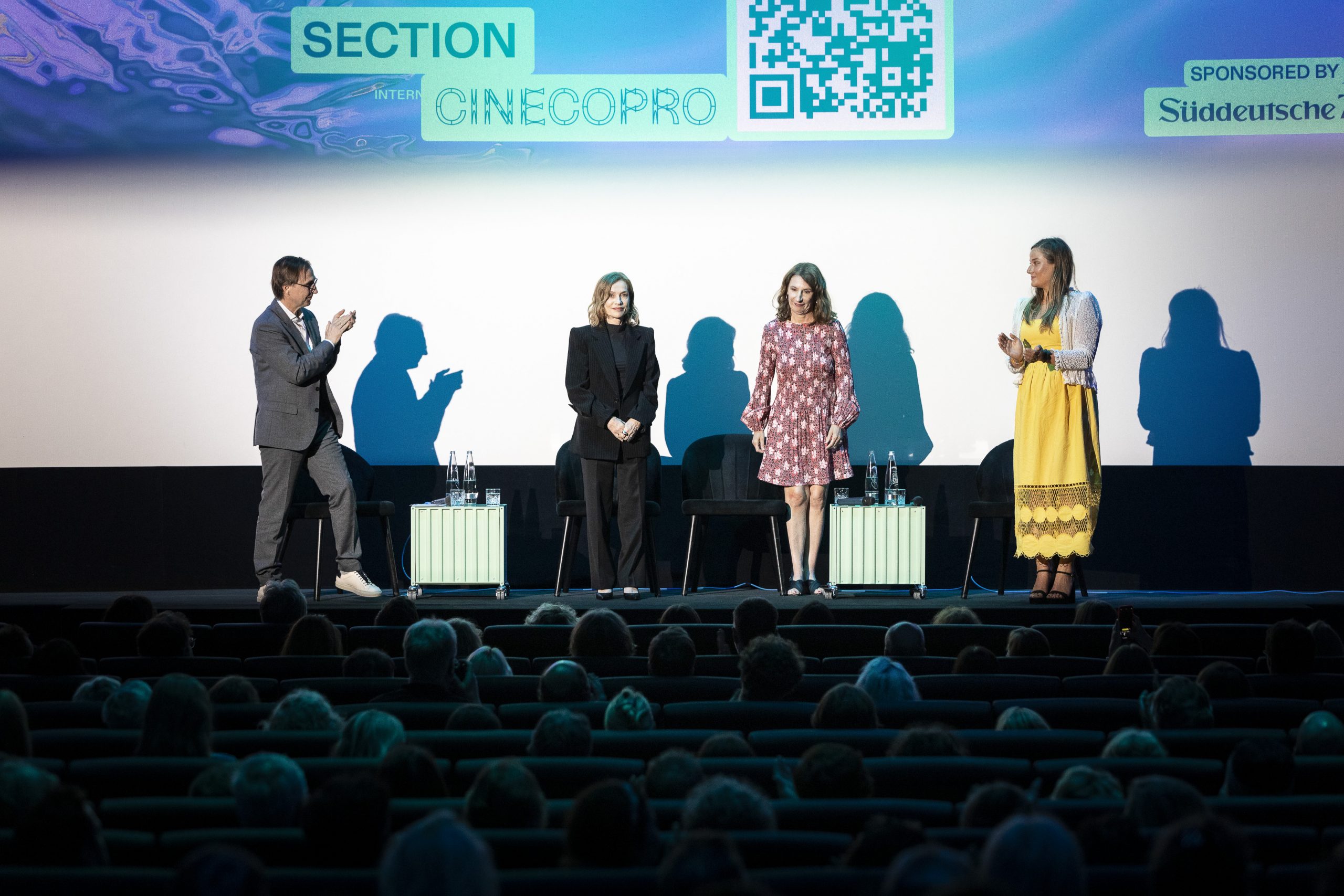 Zur umjubelten Premiere von MADAME SIDONIE IN JAPAN kam Ausnahmeschauspielerin Isabelle Huppert direkt von Dreharbeiten nach München und wurde von Regisseurin Élise Girard und Co-Produzent Felix von Boehm ins Cinema Filmtheater begleitet. Dort trafen sie auf ein begeistertes Publikum, dem Isabelle Huppert und Regisseurin Girard nach Filmende beim anschließenden Q&A gern Fragen beantworteten. Ein gelungener Auftakt für diesen poetischen Film, der berührt und träumen lässt und am 11. Juli 24 bundesweit in den Kinos startet.