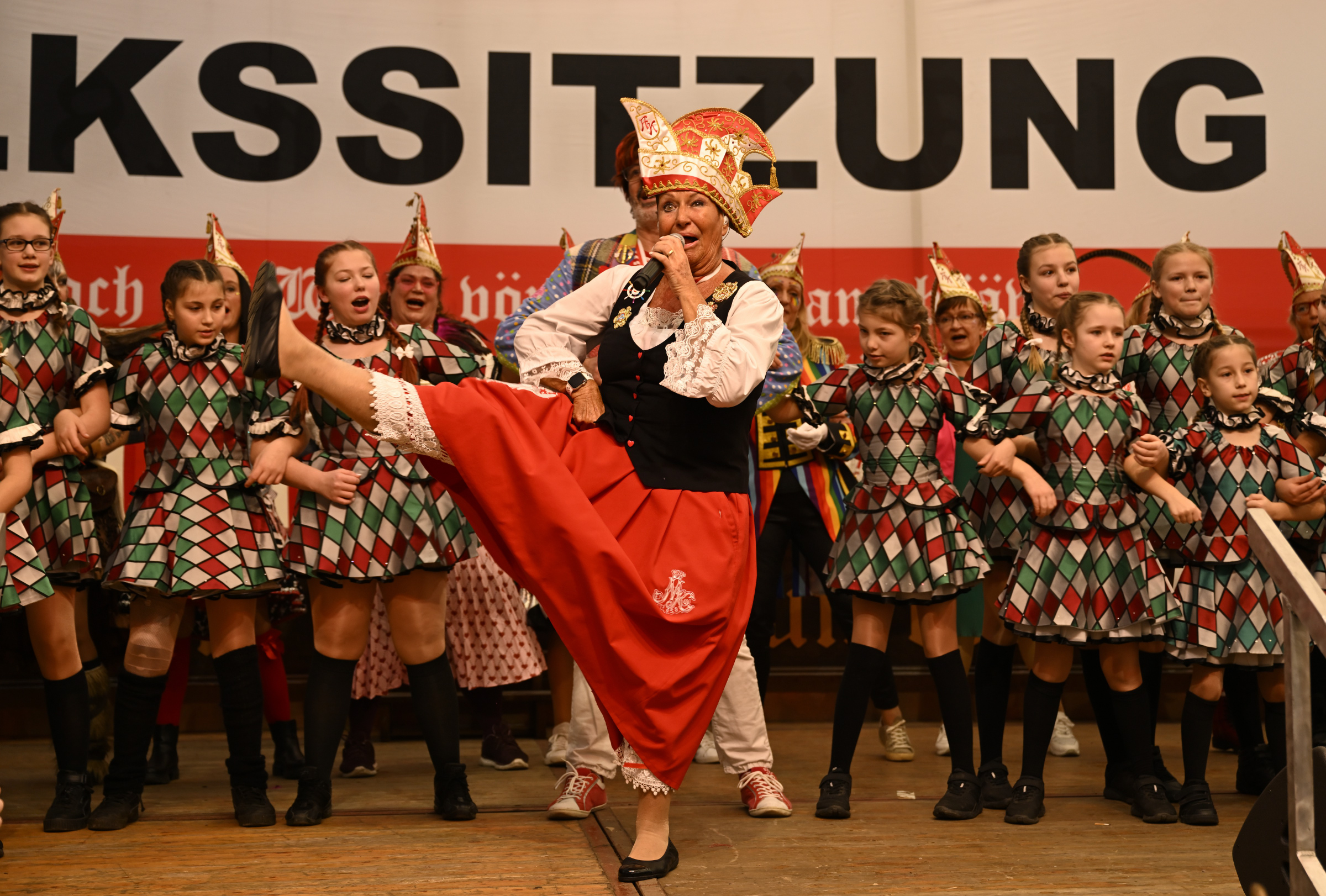 Ein erster Erfolg war in diesem Jahr bereits die Anzahl der rund 1.600 anwesenden Frauen, so viele wie noch nie. Zudem bot der einmarschierende Elferrat direkt eine weitere Überraschung. Außer dem Sitzungsleiter und langjährigen Alt-Köllen-Mitglied Jochen Langer nahmen dieses Mal ausschließlich Frauen im altehrwürdigen Elferratsgestühl Platz. Auch damit kam man einem oft geäußerten Wunsch vieler Damen entgegen.