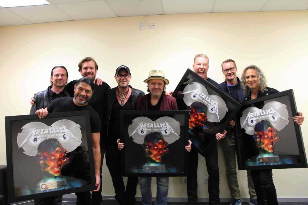 Die Rock-Ikonen hatten Ende 2016 ihr Album „Hardwired… To Self-Destruct“ veröffentlicht und direkt Platz 1 der Offiziellen Deutschen Albumcharts erobert. Zudem erreichte „Hardwired… To Self-Destruct“ bei uns Doppelplatin. Die Auszeichnung konnten James Hetfield, Lars Ulrich, Kirk Hammett und Robert Trujillo nun auch persönlich entgegennehmen und feierten im Anschluss mit ihren Fans das zweite Konzert in der LANXESS arena.