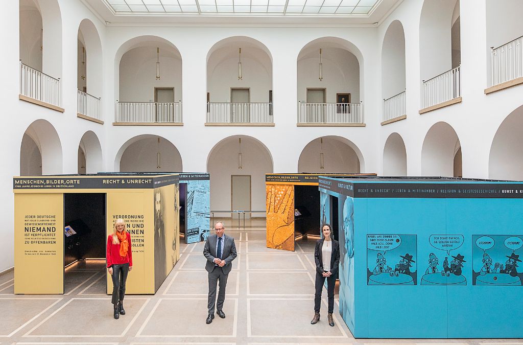 Der Direktor des MiQua, Dr. Thomas Otten, sieht in der Wanderausstellung ein Fenster in das zukünftige Museum. „Die von uns präsentierten Biografien, Bilder und Orte werden auch in unserer künftigen Dauerausstellung im MiQua eine wichtige Rolle spielen. Mit der Wanderausstellung gewinnen wir Erfahrung im Umgang mit bestimmten Themen und Narrativen.“ Die Ausstellung besteht aus vier begehbaren und multimedial bespielten Kuben, die sich auf ihren Außen- und Innenflächen jeweils einem der vier übergeordneten Themen widmen: Recht und Unrecht, Leben und Miteinander, Religion und Geistesgeschichte sowie Kunst und Kultur. Über Interaktionen können Interessierte Geschichte und Gegenwart als Teil der deutschen Gesamtgeschichte selbst entdecken. Der Erzählstrang der Ausstellung ist an biografischen Zeugnissen konkreter Personen ausgerichtet, deren Lebenswege markante Ereignisse und Epochen jüdischer Geschichte in Deutschland widerspiegeln und die Perspektive auf den europäischen Raum ausweiten. Der Schwerpunkt liegt auf der Alltagsgeschichte. Mit den Kölner Bürgerinnen und Bürgern wie Abraham von Oppenheim, Isaac Offenbach, David Levy-Elkan, Leonhard Tietz, Max Bodenheimer, David Wolffsohn, Fritz Deutsch, Richard Stern oder Edith Stein werden für den Blick auf einen gesamtdeutschen Kontext weitere wichtige Persönlichkeiten für die Meilensteine in Geschichte und Politik dieser 1700-jährigen Geschichte vorgestellt.