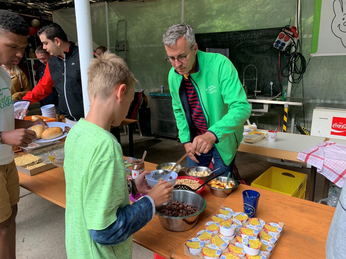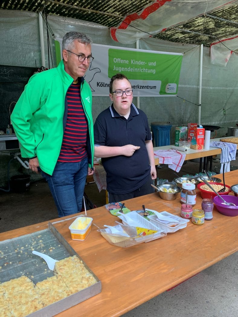Zum Ende der Woche ließ es sich Kölns Bürgermeister Andreas Wolter nicht nehmen und übernachtete selber im eigenen Zelt im KJA-Camp. „Ich bin der Einladung sehr gerne gefolgt. Bei der Nachtwanderung und dem anschließenden Lagerfeuer konnte ich mit den jungen Teilnehmenden sehr gut ins Gespräch kommen und erfahren, wo ihnen derzeit der Schuh drückt“, sagte der erste Stellvertreter der Kölner Oberbürgermeisterin nach einer kurzen Nacht im Zelt. Direkt am Morgen war Bürgermeister Wolter zum Frühstück machen eingeteilt. Das Camp wird von den neun Offenen Kinder- und Jugendeinrichtungen der KJA Köln ausgerichtet. Es ist Kölns erstes inklusives Zelt-Camp und heißt jedes Jahr junge Menschen mit und ohne Beeinträchtigung herzlich willkommen. Dass auch junge Menschen mit Beeinträchtigung an diesem besonderen Camp teilnehmen können, ermöglicht die vertraute Kooperation mit der Lebenshilfe Köln.