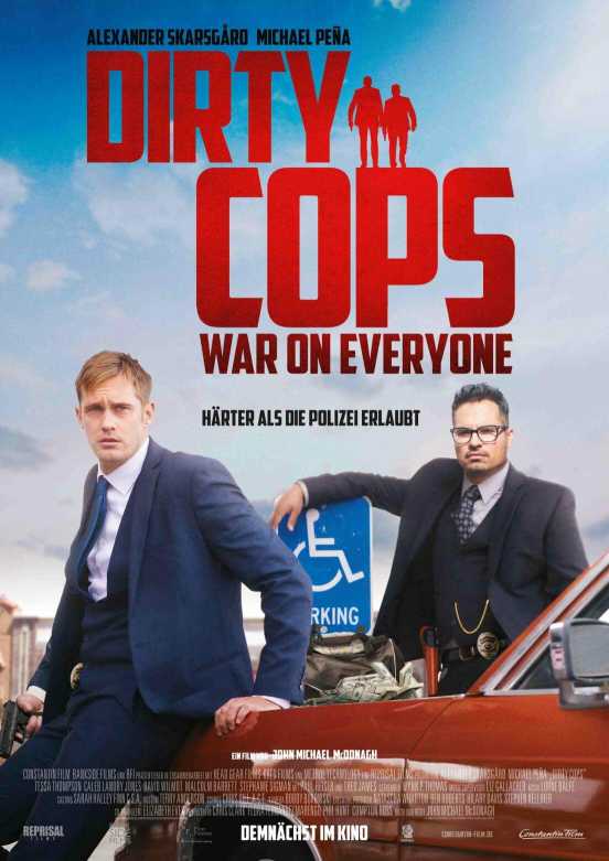 Schräge Typen, ganz viel Action und herrlich kompromissloser Humor: Mit DIRTY COPS: WAR ON EVERYONE bringt der preisgekrönte britische Regisseur John Michael McDonagh (THE GUARD – EIN IRE SIEHT SCHWARZ, AM SONNTAG BIST DU TOT) eine rabenschwarze Actionkomödie auf die Kinoleinwand, wie man sie lange nicht gesehen hat. In den Hauptrollen spielen Alexander Skarsgård (TARZAN, „True Blood“), Michael Peña (ANT-MAN, HERZ AUS STAHL) und Theo James (DIVERGENT-Serie).