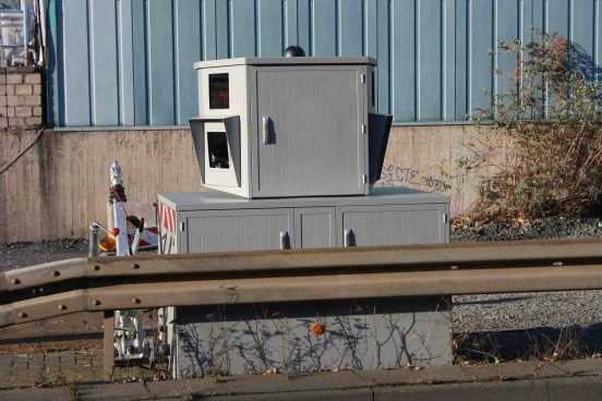 Das Ordnungsamt der Stadt Köln hat eine neuartige Anlage zur Geschwindigkeitsüberwachung in Köln-Deutz am Auenweg in Höhe der Hausnummer 185 in Betrieb genommen. Zwei Laser messen dort die Geschwindigkeit in beide Fahrtrichtungen, Personal ist für die Messungen nicht erforderlich.