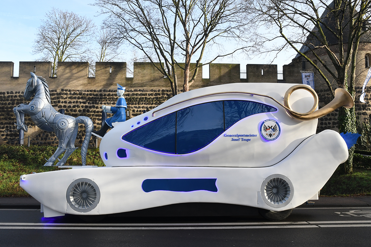 Die Blauen Funken möchten darüber informieren, dass sie am heutigen Rosenmontagszug einen neuen Festwagen vorstellen werden. Es handelt sich dabei um die neue Funkenpost des Blaue Funken-Generalpostmeisters Josef Teupe. Als für ihn eine neue Postkutsche benötigt wurde, haben die Blauen Funken einen Prozess angestoßen, der in einem zukunftsweisenden Festwagen für den Kölner Rosenmontagszug endete, einerseits im Design und andererseits in der Antriebsart.
