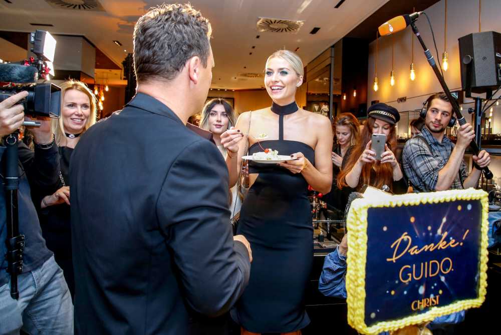 Bereits seit dem 31.08.2017 wieder für die Kunden geöffnet, wurde der Pilot-Store am Abend des 21.09.2017 im Rahmen eines feierlichen Opening-Events ausgewählten Gästen offiziell vorgestellt. Rund 85 Pressevertreter, Influencer, Geschäftspartner und Freunde des Hauses folgten der Einladung von CHRIST Geschäftsführerin Ursula Vierkötter-Weber und nutzten die Gelegenheit, den neu gestalteten Store zu entdecken und sich digital inspirieren zu lassen. Grund zum Feiern gab es gleich in doppelter Hinsicht: Mit Blick auf die anstehende Weihnachtssaison jährt sich zudem die erfolgreiche Zusammenarbeit mit Partner Guido Maria Kretschmer. Als Special Guest hielt der Designer nach offizieller Vorstellung und Begrüßung der Gäste durch Ursula Vierkötter-Weber eine emotionale Rede und wurde im Anschluss mit einem Video „1 Jahr CHRIST und Guido Maria Kretschmer – Danke Guido!“ und seiner Lieblingstorte überrascht. Im Laufe des Abends konnten ausgewählte Blogger und Influencer Guido Maria Kretschmer beim Meet & Greet persönlich kennenlernen. Model Lena Gercke übernahm während des Events den CHRIST Instagram-Account und teilte ihre Eindrücke mit der Community.