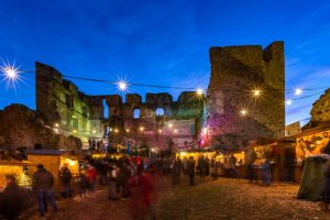 Kann man sich den Advent besinnlicher und romantischer vorstellen als in einem festlich beleuchteten Schlosshof oder in einer Burgruine hoch über dem Weltkulturerbe Wachau? Schon an den ersten drei Wochenenden im November öffnet auf der Burgruine Aggstein ein Adventmarkt mit eingebettetem Kunsthandwerksmarkt, seine Pforten. Shuttlebusse bringen die Besucher hinauf zur Burg, in der sich die Gäste wie in einer anderen Zeit wiederfinden.