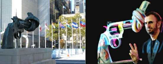 Am 2. Oktober war Internationaler Tag der Gewaltlosigkeit. Zu diesem Datum wurde der Verkauf der Revolver-Skulptur mit dem verknoteten Lauf nach den Designs von Paul McCartney, Muhammad Ali, Michael Ballack & Co nochmals verstärkt. Ganz neu waren die Designs vom Star-Architekten Hadi Teherani und dem als „Bananensprayer“ bekannten Künstler Thomas Baumgärtel.