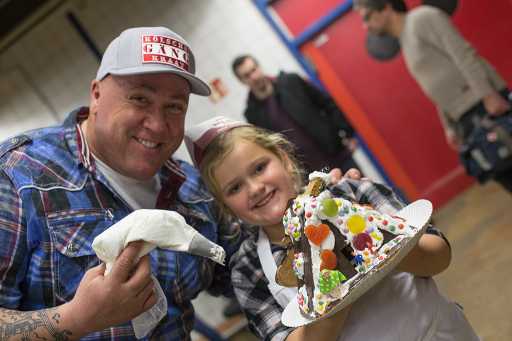 Im Anschluss wurden gemeinsam Hexenhäuser gebastelt: Ein große Lebkuchen-Hexenhaus wurde nach Herzenslust verziert und wird in Kürze zugunsten des Vereines Kölsche Kraat Hilft e. V. versteigert.