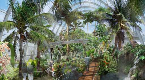 Der eigentliche Neubau der Schaugewächshäuser mit Orangerie schließt sich im Frühsommer 2018 an. Bei dem Projekt sind nach dem Rohbau (2018) und der StahlGlaskonstruktion (2019) für den Innenausbau (ab 2020) die Jahreszeiten besonders maßgebend, weil die tropischen Großgewächse nur im Sommerhalbjahr transportiert und gepflanzt werden können. Auf diese gegen niedrige Temperaturen besonders empfindlichen Gewächse folgen rund 5.000 weitere Tropen- und Wüstenpflanzen und die Einrichtung der didaktischen Elemente. Die für den Neubau zuständige Gebäudewirtschaft will die Errichtung der Schaugewächshäuser 2021 abschließen.
