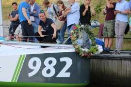Lina Rixgens ihr großes Anliegen: Die Unterstützung der DKMS. Sichtbares Zeichen ist das DKMS-Logo, das einen prominenten Platz an Deck bekommen hat und schon von weitem sichtbar ist.Die Ehre der offiziellen Taufe der „Whomper“ durfte der DKMS-Vertreter