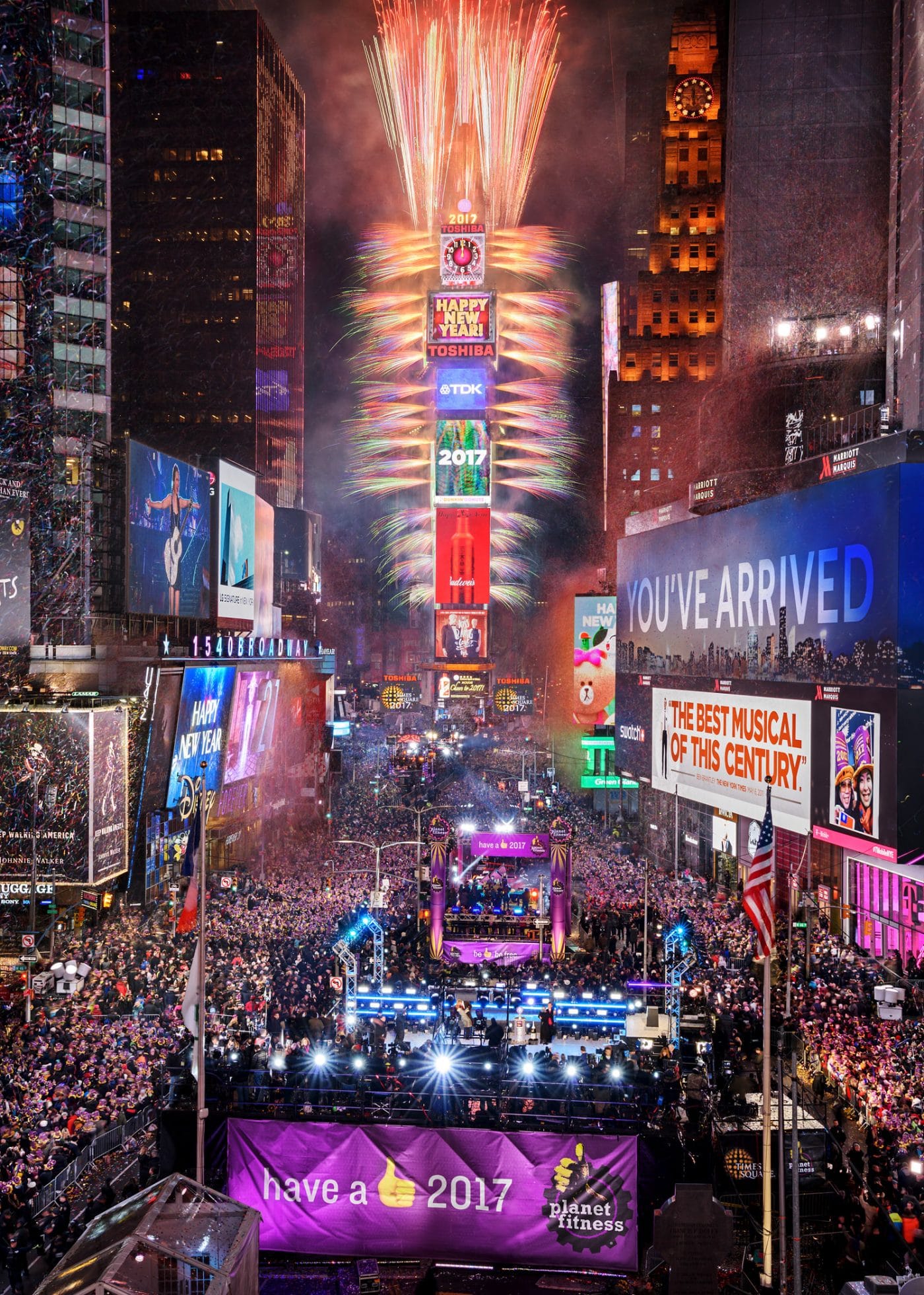 Am 28. Dezember, von 12.00 bis 13.00 Uhr, sind Einheimische und Reisende eingeladen, den Good Riddance Day auf der Broadway Plaza am Times Square zu feiern, wo schlechte Erinnerungen durch einen riesigen Schredder beseitigt werden. Besuchen Sie vom 1. bis 29. Dezember die Wishing Wall am Times Square, um Ihre Hoffnungen und Träume für 2025 zu teilen. Diese werden als Konfetti fallen gelassen, wenn die Uhr Mitternacht schlägt. Wünsche in elektronischer Form können hier oder auf Social Media unter dem Hashtag #ConfettiWish eingereicht werden. Die fast 6 Tonnen schwere Kugel, die mit 2.688 Waterford Kristalldreiecken bedeckt ist, kann mit ihren mehr als 16 Millionen verschiedenen Farben vom One Times Square aus die Nacht erleuchten. Dick Clark`s New Year`s Rocking Eve wird die Feierlichkeiten am Times Square weltweit übertragen. Diese beinhalten Auftritte von Superstar-Performern (welche noch bekannt gegeben werden) und den Gastgeber Ryan Seacrest. Zuschauer weltweit können TimesSquareNYC.org, NewYearsEve.nyc und TimesSquareBall.net besuchen, um das jährliche Ereignis zu verfolgen.