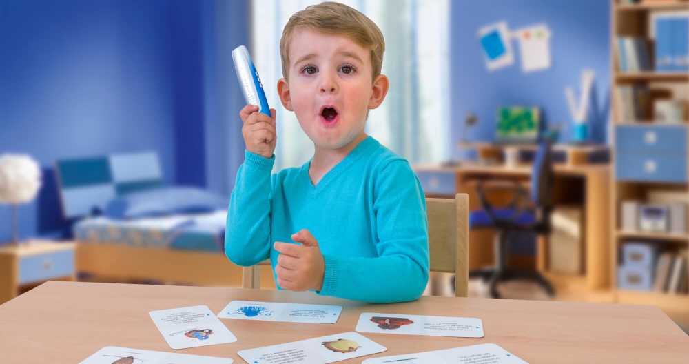 (Land-)Karten etc. mit Klängen oder eigenen Sprach-Sequenzen erweitert und zum Leben erweckt werden. Mithilfe kleiner Aufkleber, auf denen zum Beispiel Tiergeräusche oder Klänge unterschiedlicher Musikinstrumente installiert sind, entsteht im Handumdrehen individuelles Spiel- und Lernmaterial. Zusätzlich können – per eingebautem Mikrofon – selbst gesprochene Hörelemente auf dem Stift aufgezeichnet und „freien“ Stickern zugeordnet werden. So „muht“ und „grunzt“ es aus vorhandenen Bauernhof-Bilderbüchern und die beliebten (Fußball)-Stickeralben erzählen alles über die Lieblings-Stars.