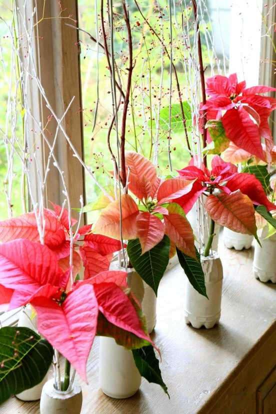 Die meisten Menschen denken bei der Weihnachtssternpflanze wohl an die klassische Topfpflanze mit den roten und grünen Blättern. Kein Wunder, ist doch der weitaus größte Teil der hierzulande verkauften Weihnachtssterne rot. Doch den schönen Winterblüher gibt es auch in vielen anderen Farbtönen wie zum Beispiel in Creme, Apricot oder Pink. Besonders die pinken Varianten können auch bei Anhängern eines modernen Lebens- und Einrichtungsstils punkten. Zu Recht, wie dieses Arrangement aus Schnitt-Weihnachtssternen in stylischen Betonvasen zeigt. Die Vasen können selbst ungeübte Bastler mit alten PET-Flaschen und schnell trocknendem Beton ganz einfach selbst herstellen. Wie das geht, verrät die folgende Anleitung:
