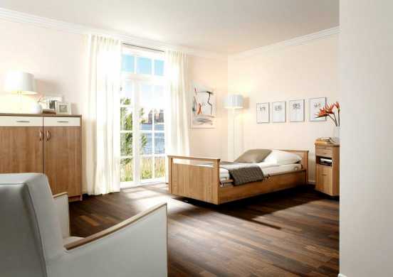 Wenn ein Mensch alters- und krankheitsbedingt pflegebedürftig wird, verwandelt sich das Bewohnerzimmer im Altenheim oftmals zum letzten Wohnzimmer. Das Pflegebett als Dreh- und Angelpunkt gewinnt in dieser Phase an zentraler Bedeutung für das Wohlbefinden und die Würde eines Bewohners. Der Komfort und die Funktionalität des Pflegebettes spielen dabei eine wesentliche Rolle, um den Alltag für Bewohner und Pflegepersonal so angenehm und lebenswert wie möglich zu gestalten. Damit darüber hinaus ein Maximum an Wohnkomfort erreicht wird, greift wissner-bosserhoff bei der Material- und Farbauswahl stets den aktuellen, natürlichen Wohntrend auf. Auf diese Weise entsteht eine behagliche und warme Atmosphäre, in der sich Bewohner aufgehoben und geborgen fühlen.