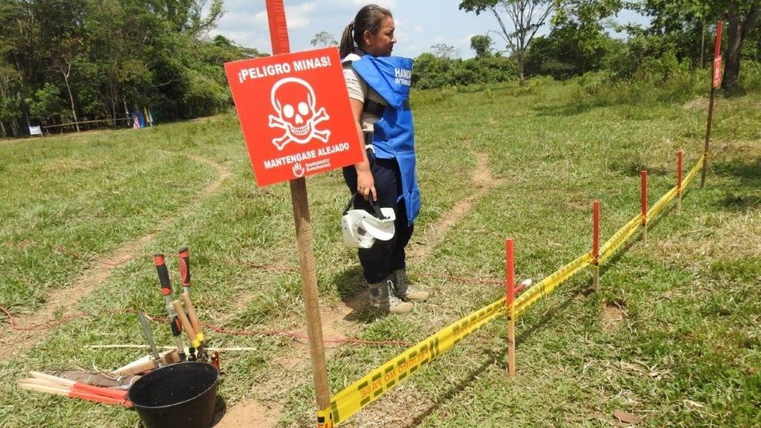 Liby Lenis Diaz kämpft jeden Tag dafür, dass ihre Heimat ein bisschen sicherer wird. Die Angst ist immer dabei, erzählt die Kolumbianerin. Seit sie denken kann, hat sie Angst, da in ihrer Gegend im Süden der Hauptstadt Bogotá seit Jahrzehnten unzählige Minen liegen. Sie hat Angst, dass ihren Kindern etwas passiert. Und sie hat Angst, dass ihr selber etwas zustößt. Doch wenn sie auf den Knien Meter für Meter über den Boden rutscht und nach Minen sucht, dann ist sie ganz ruhig und konzentriert. Liby ist eine der Entminerinnen von Handicap International (HI). Die gemeinnützige Organisation hat seit 2017 mehr als 600.000 Quadratmeter Land in Kolumbien geräumt.