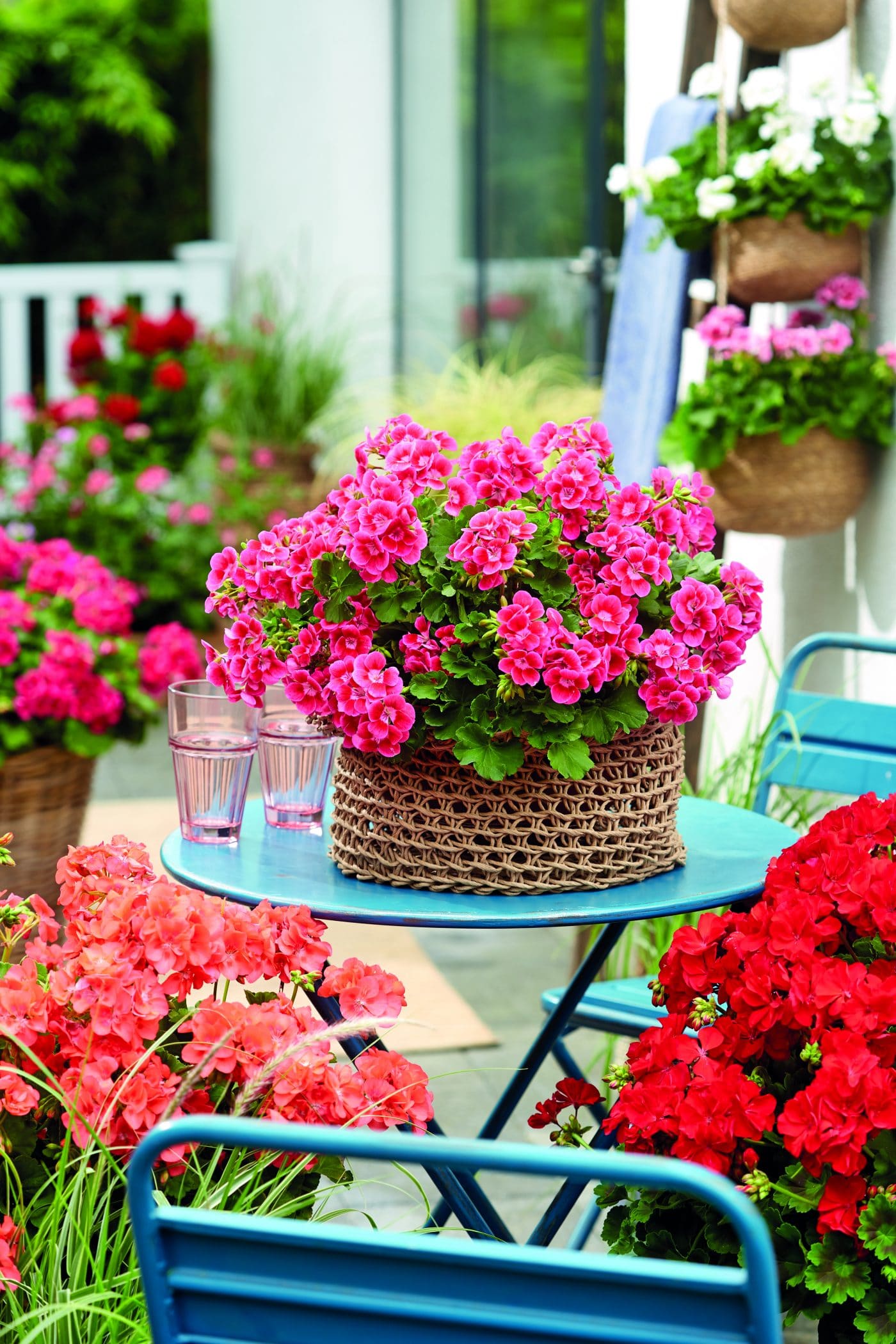 Üppige Blütenpracht für sonnige bis halbschattige Lagen verspricht die Geranie. Ihre Blütezeit erstreckt sich von Mai bis in den Oktober und ist damit länger als bei den meisten anderen Beet- und Balkonpflanzen. Die Blütezeit der als Zimmerpflanze beliebten Edelgeranie beginnt sogar schon deutlich früher. Und auch in punkto Blühfreude, Vielfältigkeit und Pflegeleichtigkeit ist die Geranie nur schwer zu schlagen. Kein Wunder, dass sie im April und Mai seit Jahrzehnten die Hitliste der blühenden Beet- und Balkonpflanzen anführt.