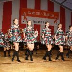 Literat Stephan Degueldre hatte in bewährter Weise für alle drei Tage ein fantastisches Programm der Spitzenklasse zusammengestellt. Für die Mädchensitzung ist dies immer eine große Herausforderung, ist doch montags für die allermeisten Künstler immer auftrittsfreier Erholungstag. Aber auch in diesem Jahr war es Degueldre durch seine vielen persönlichen Kontakte wieder gelungen die Plaggeköpp, Kölschraum, Martin Schopps, Marita Köllner, Bernd Stelter, Klüngelköpp, Räuber, Lupo, Domstürmer und zum krönenden Abschluss die Paveier extra für die Nüümaats Wiever auf die Bühne zu holen. Selbstverständlich waren auch die Tänzerinnen und Tänzer der gesellschaftseigenen „Kölschen Harlequins“ mit an Bord. Besonderen Beifall gab es für Klaus Lückerath von den Paveiern, der an diesem Montag zudem seinen Geburtstag feierte. Neben Glückwünschen durch Sitzungspräsidenten Riedel und eine Flasche Sekt intonierte das ganze Zelt ein stimmgewaltiges „Happy Birthday“.